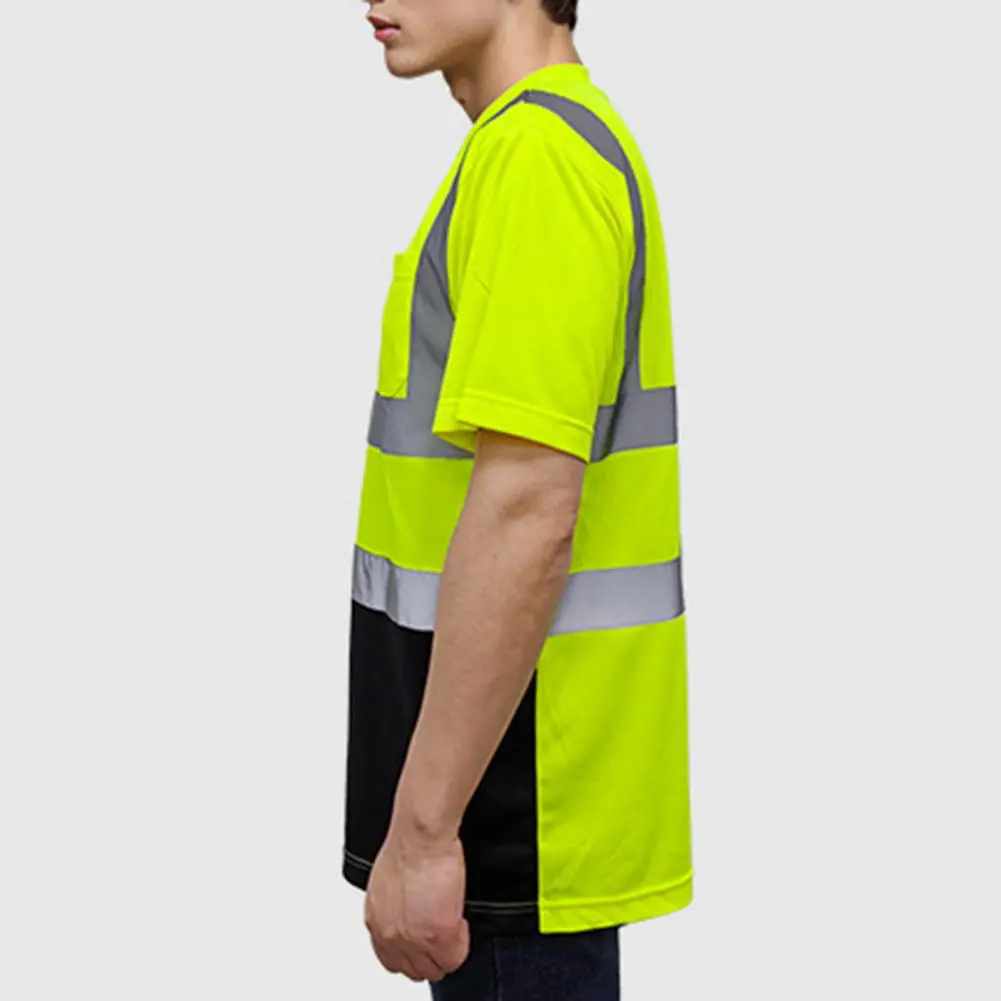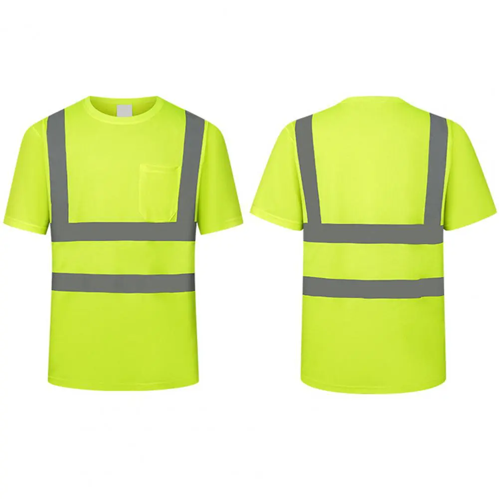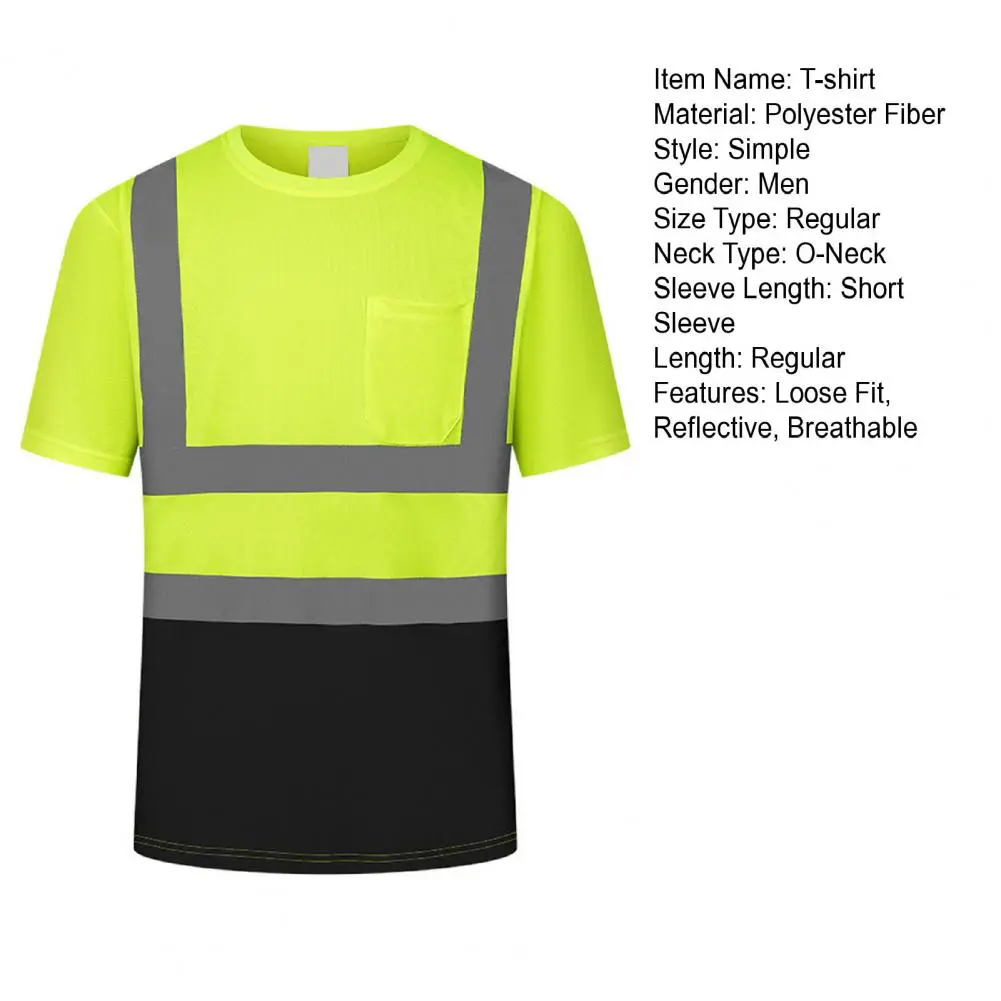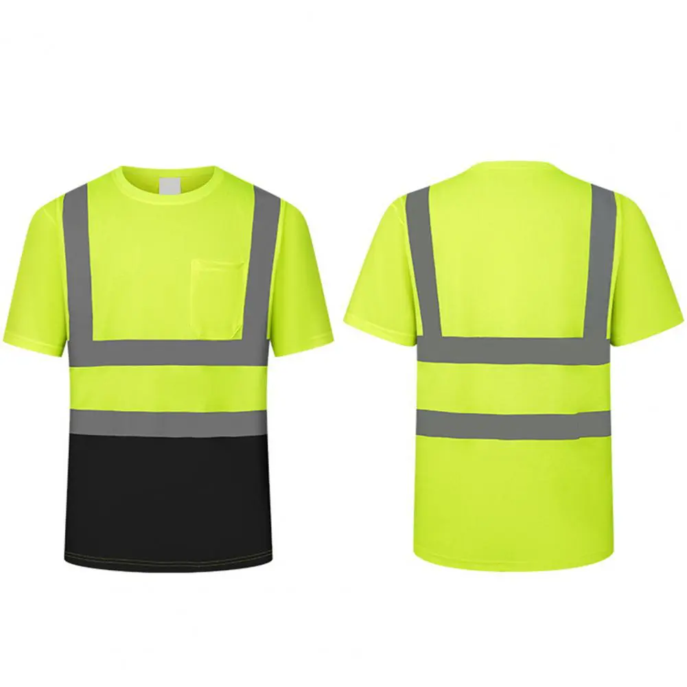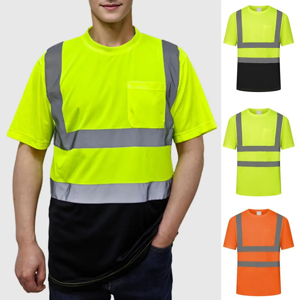 Men Reflective Clothes O-Neck Short Sleeve High Visibility T-Shirt with Mesh Panels Industrial Workwear