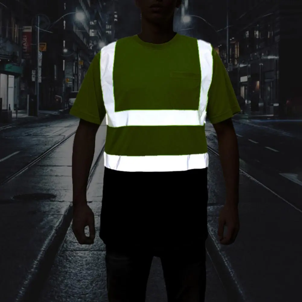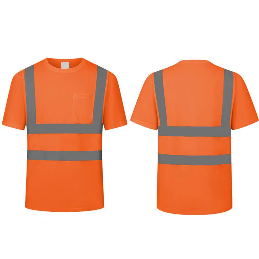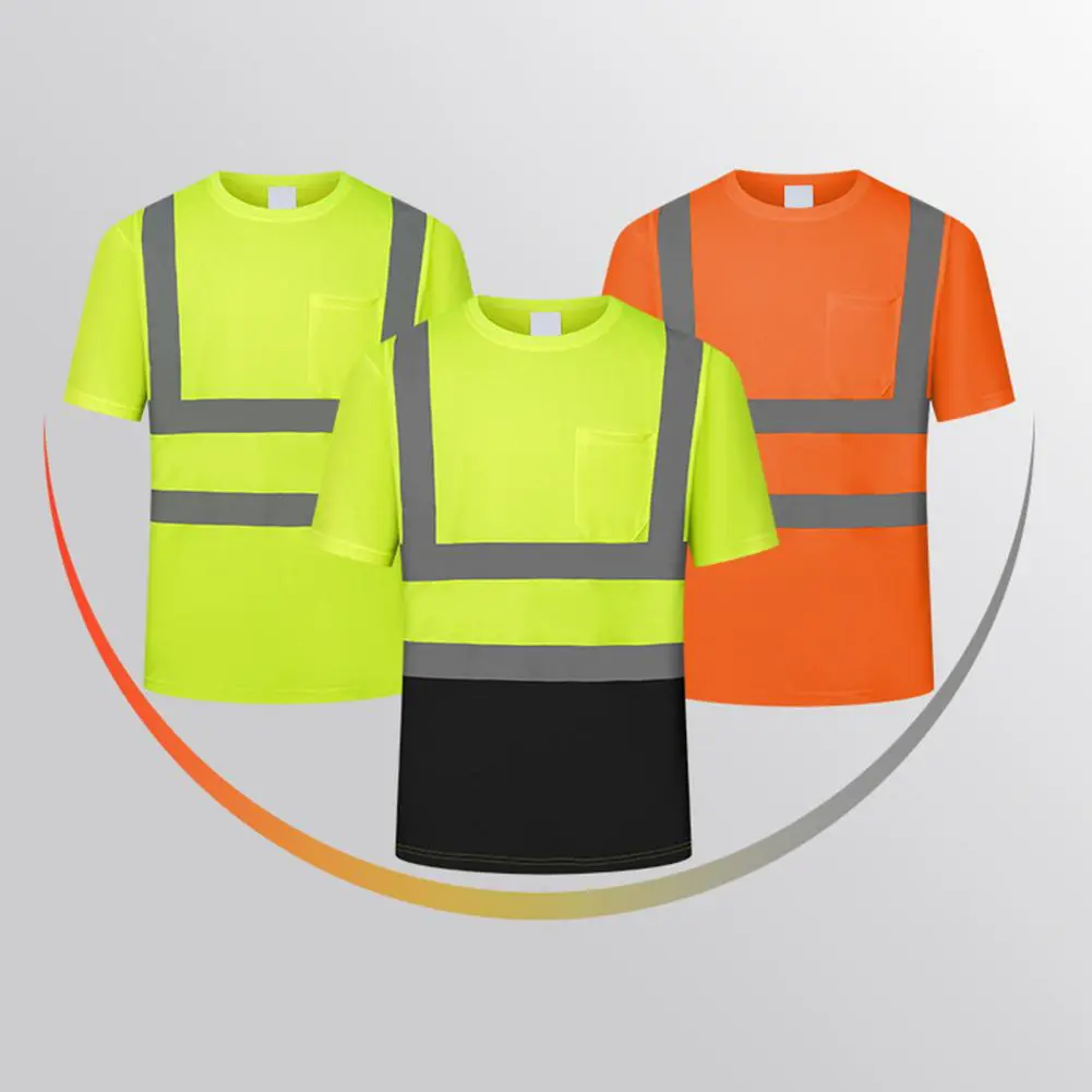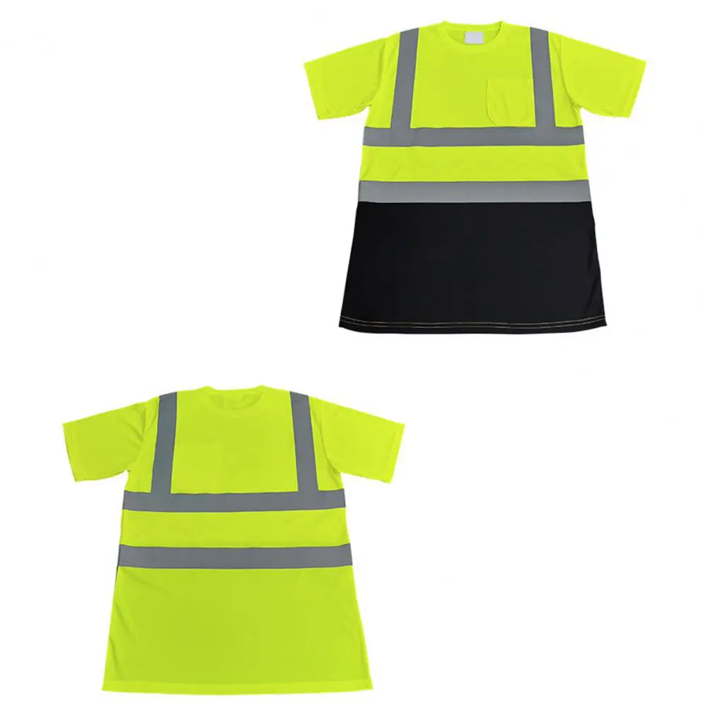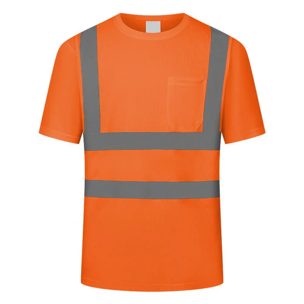 Men Reflective Clothes O-Neck Short Sleeve High Visibility T-Shirt with Mesh Panels Industrial Workwear