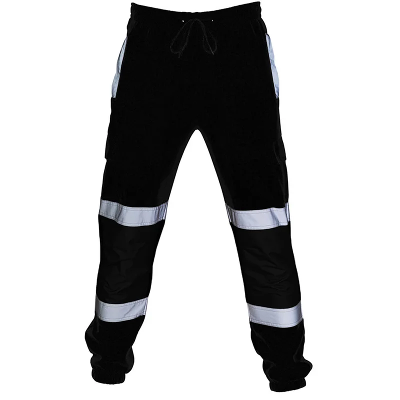 Men Road Work High Visibility Casual Pockets Work Cycling Trousers Pants Men's Reflective Training Sports Pants