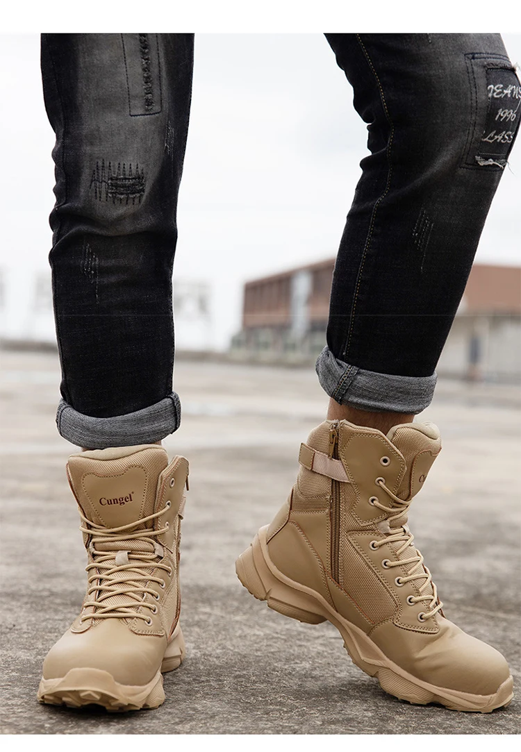 Men Work Safety Boots Steel Toe Work Boots Anti-smashing Indestructible Work Shoes Combat Military Boots Tactical Desert Boots