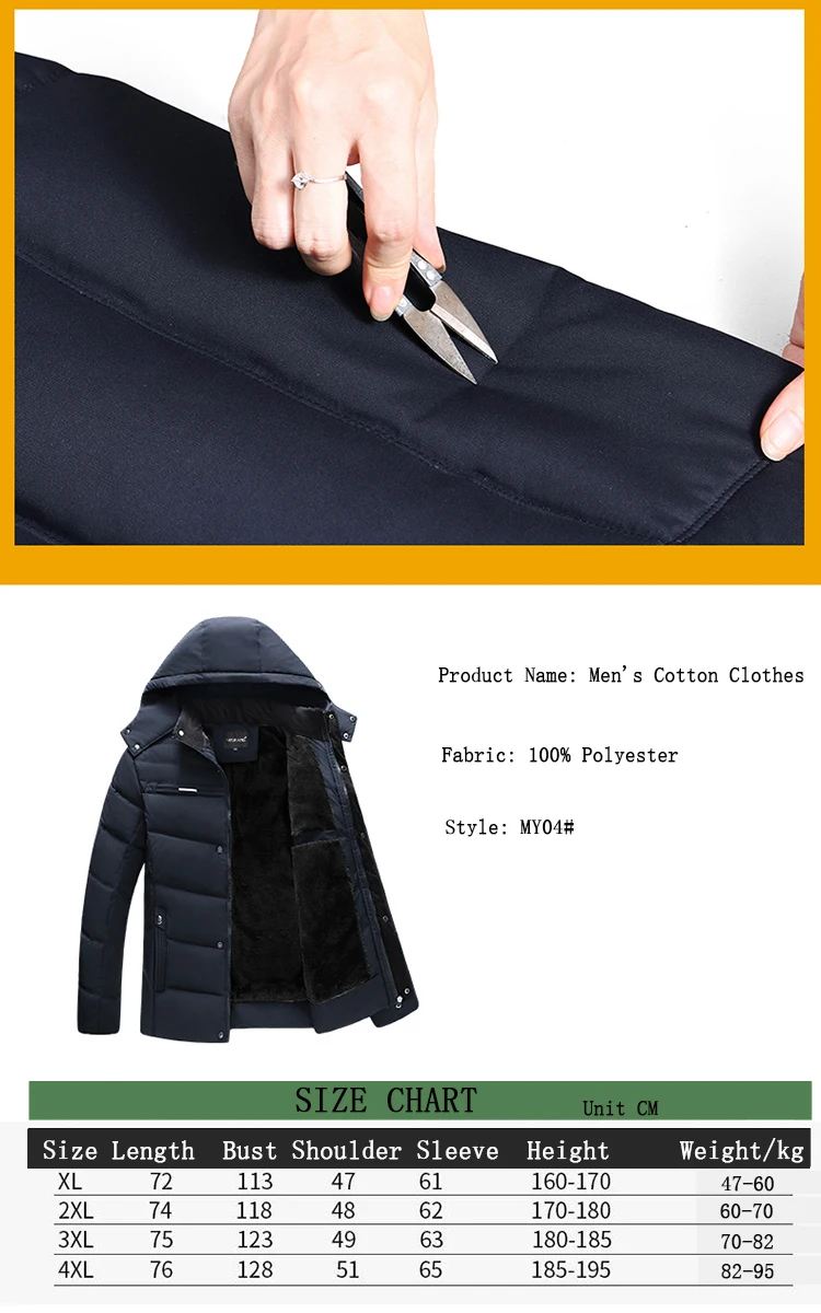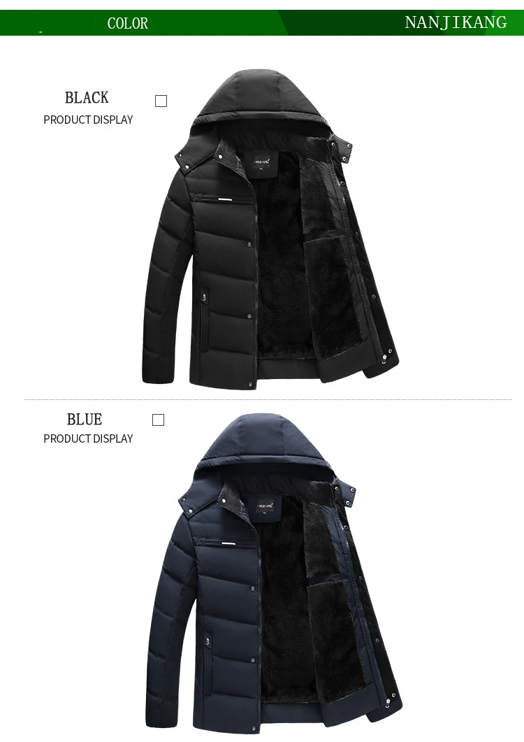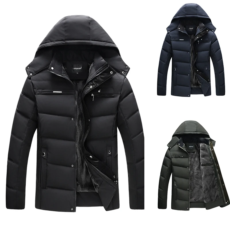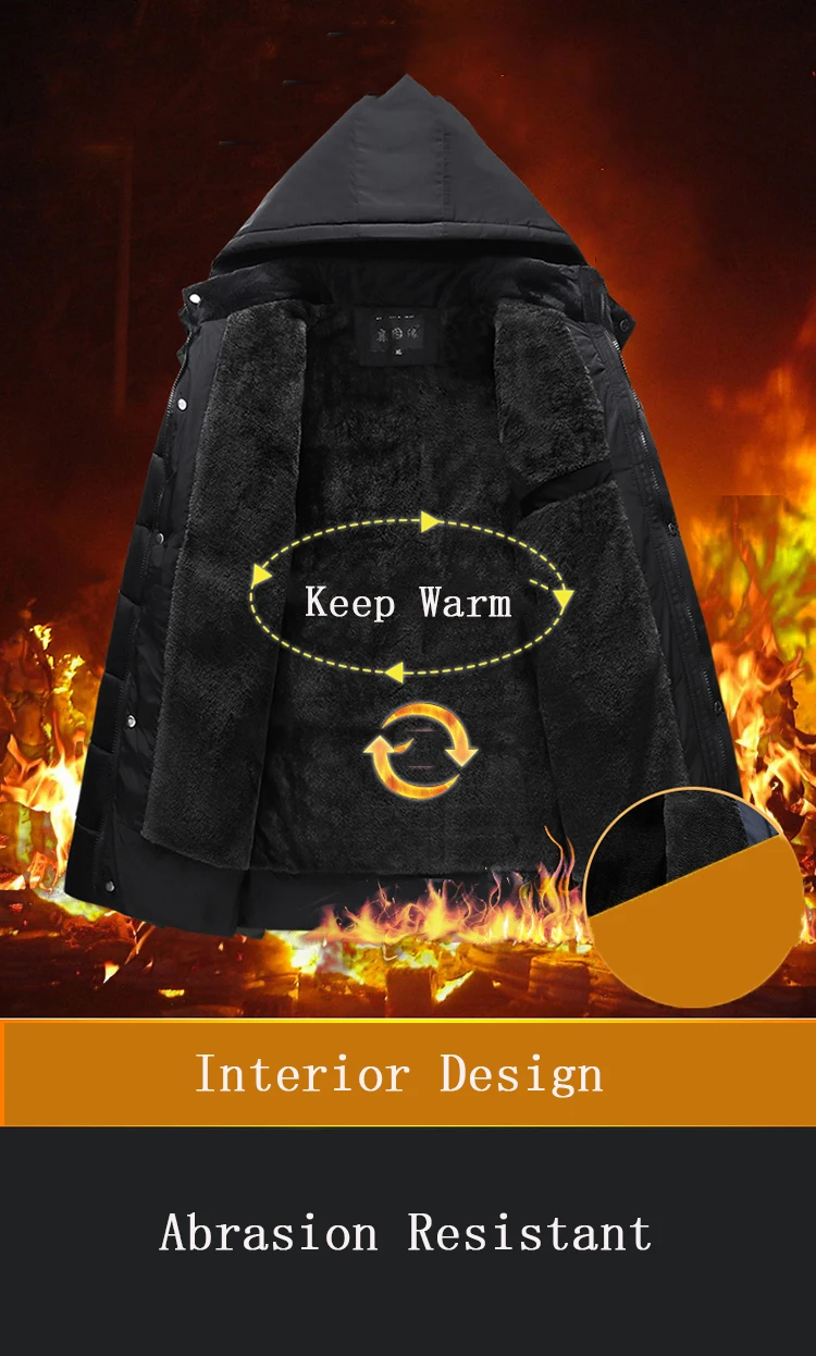 Men’s Jacket Thicken Hooded Men’s Coat Winter Plush Warm Windbreaker Casual Parka For Men Waterproof Outwear Fathers’ Clothing