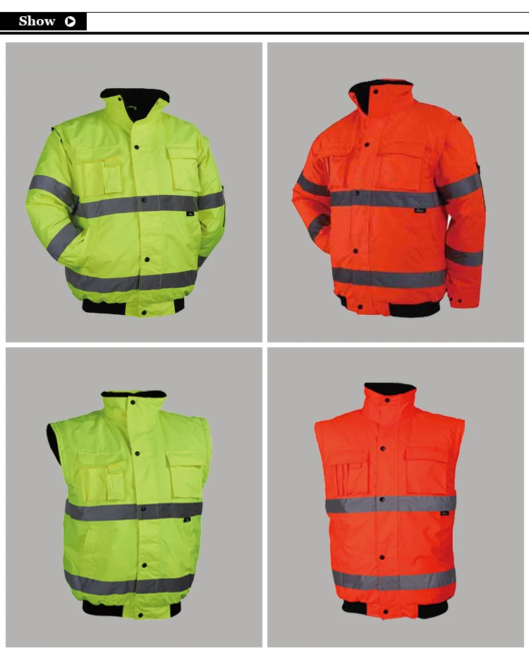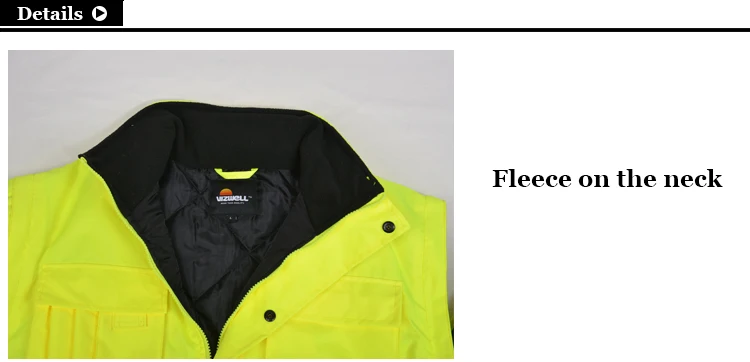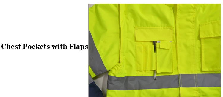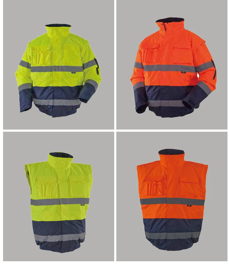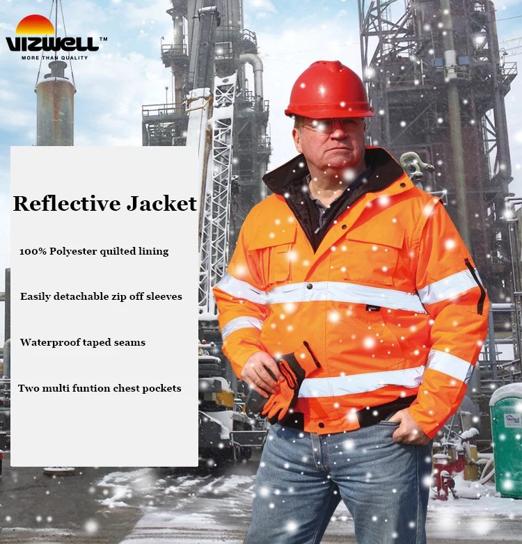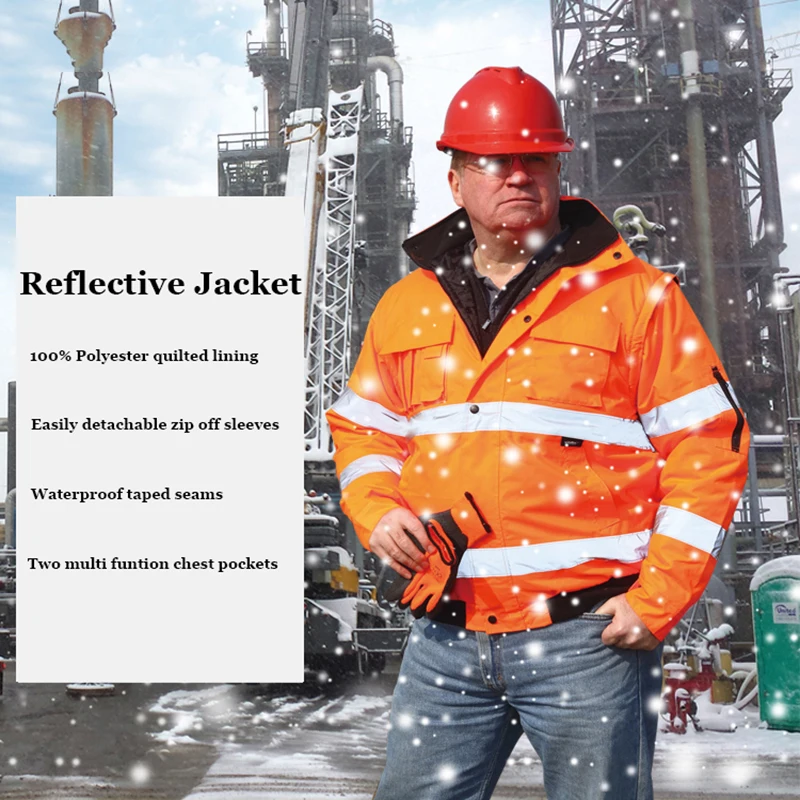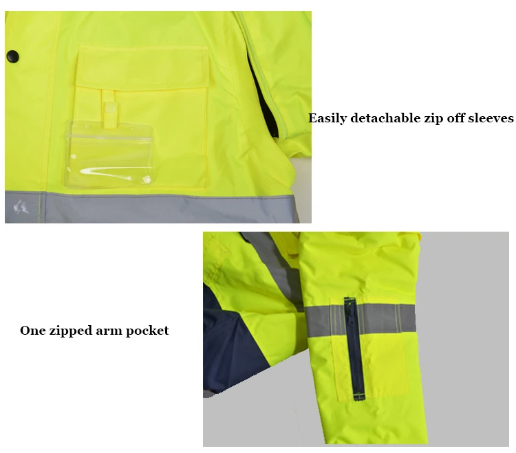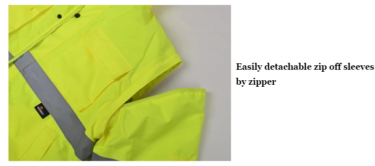 Men's Winter Hi Vis Safety Jacket Waterproof Jacket With Removable Sleeves Reflective Workwear