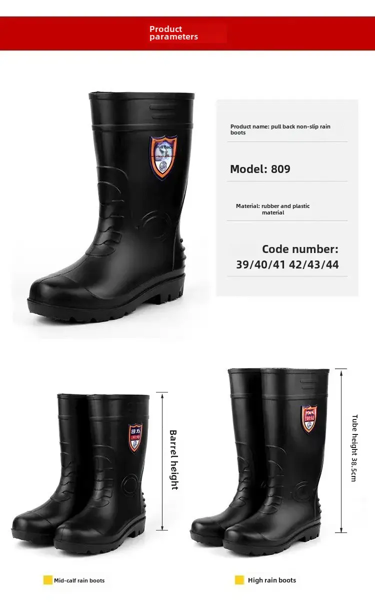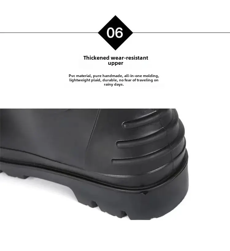 • Protective Footwear :Designed as protective shoes, they shield your feet from water and mud, making them ideal for construction sites or rainy days.