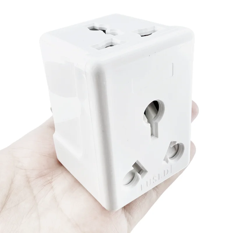 3 pin 3 gang plug has three sockets, one on top , one on down and another on front. The three way wall socket plug adapter effortlessly gives you an extra socket indoors without worrying about extension cord. Can be used on any indoor mains sockets.