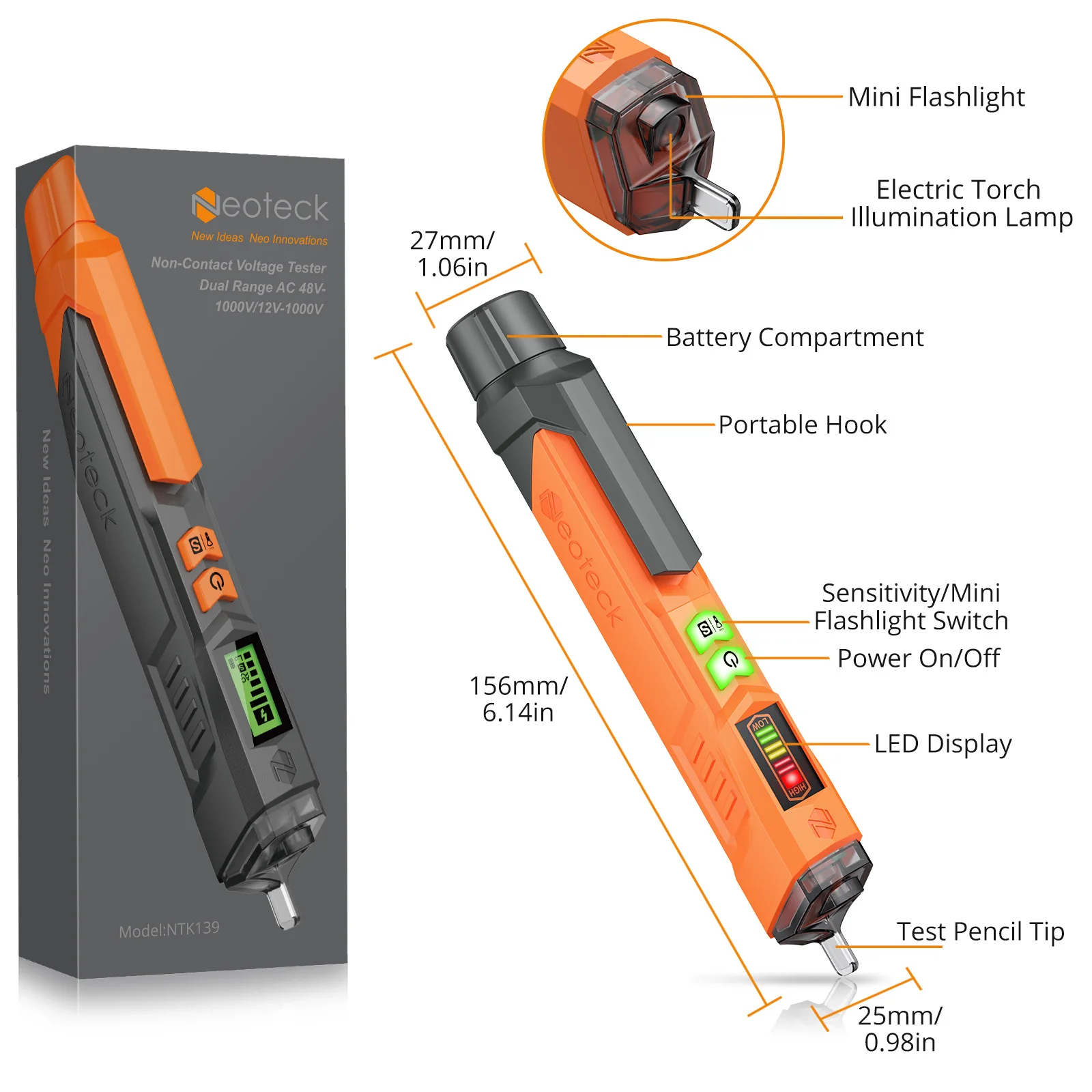 Non Contact Voltage Tester 12-1000V/48-1000V Adjustable Sensitivity AC Voltage Detector Tester Pen LED Flashlight