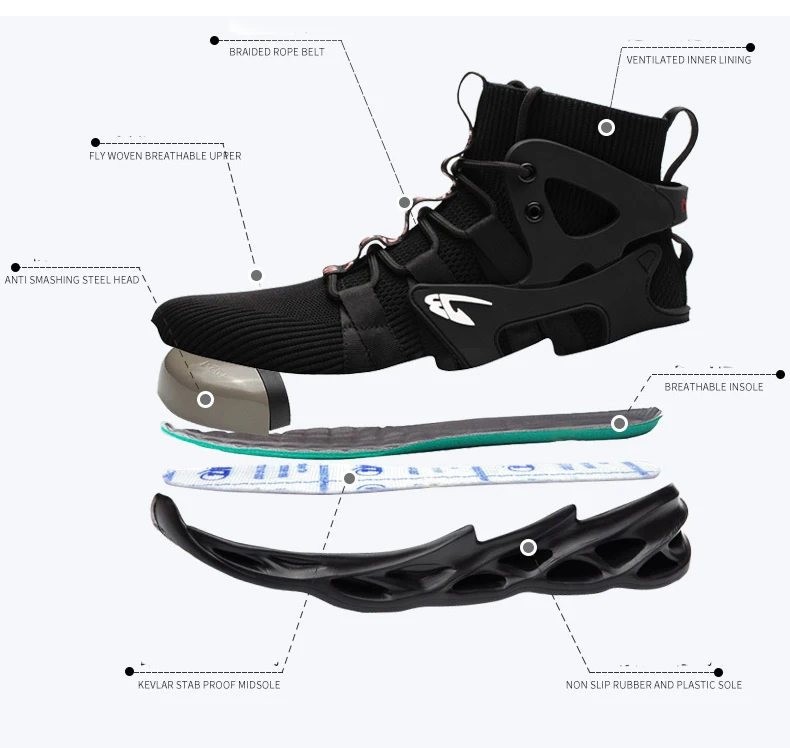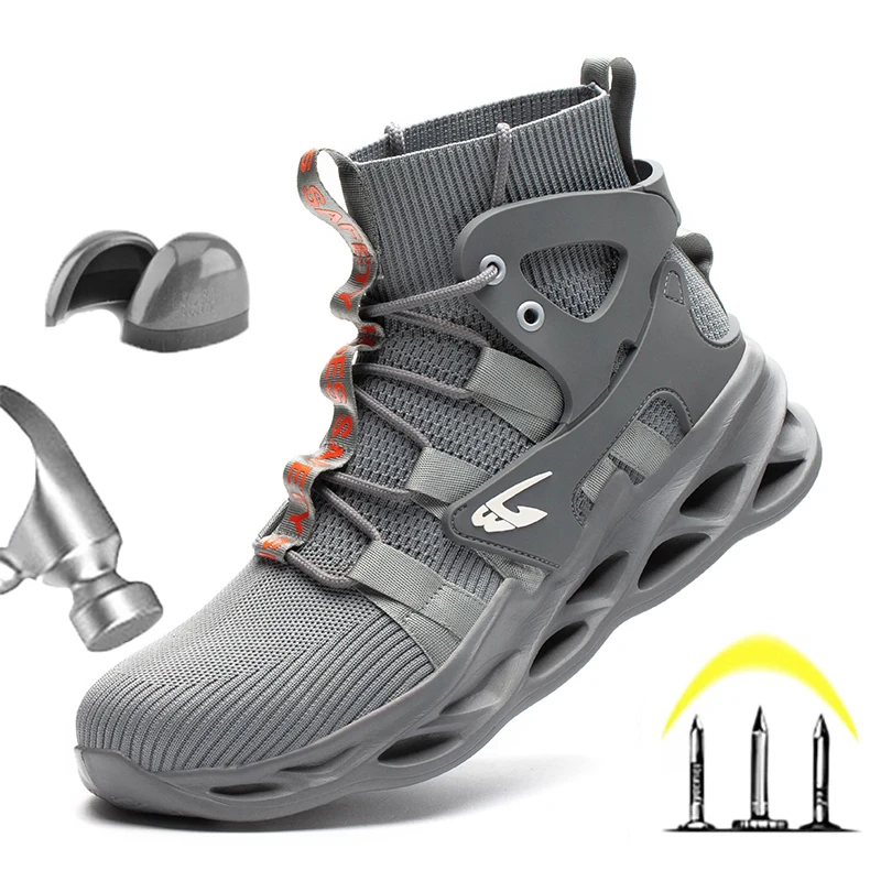 New Breathable Men Boots Anti-smash Work Sneakers Safety Shoes With Steel Toe Cap Indestructible Work Boots Hiking Shoes