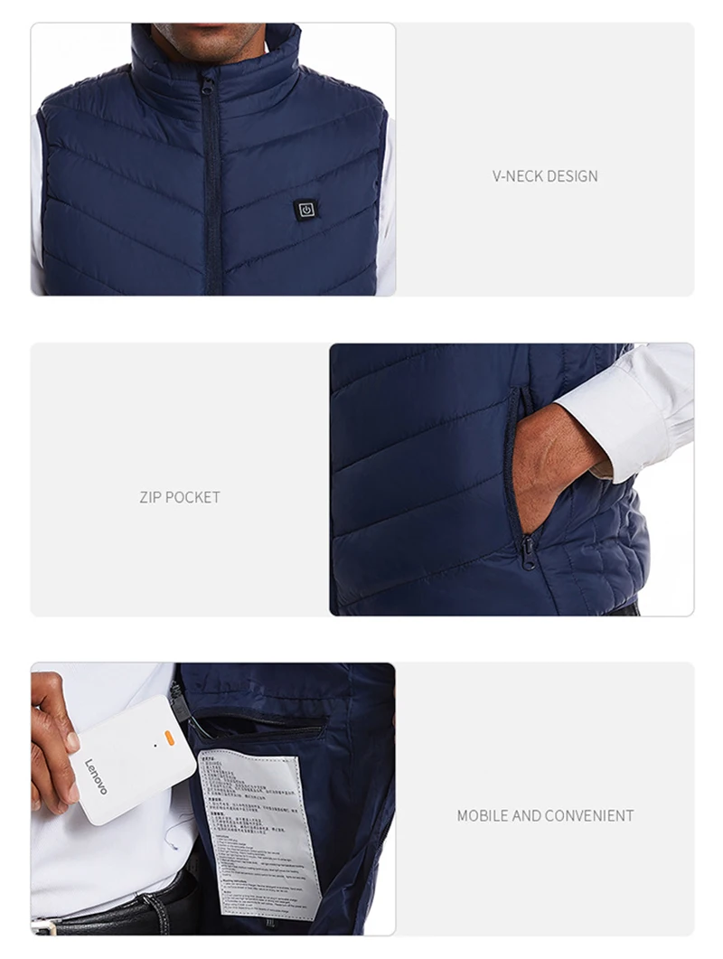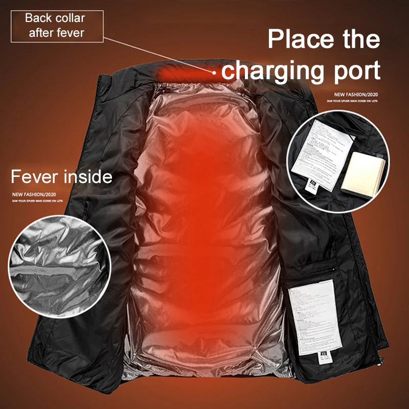 New Heated Vest Outdoor Warm Winter Warm Electric USB Men Women Heating Coat Washable 2 Heating Zones Thermal Clothing