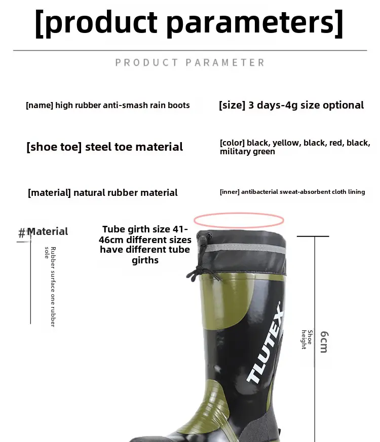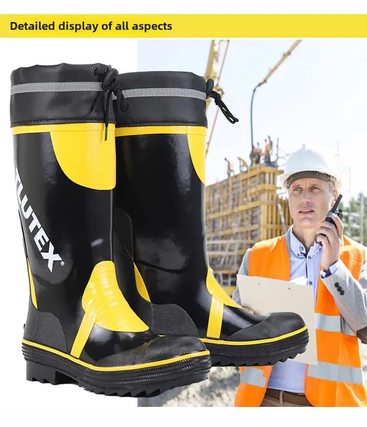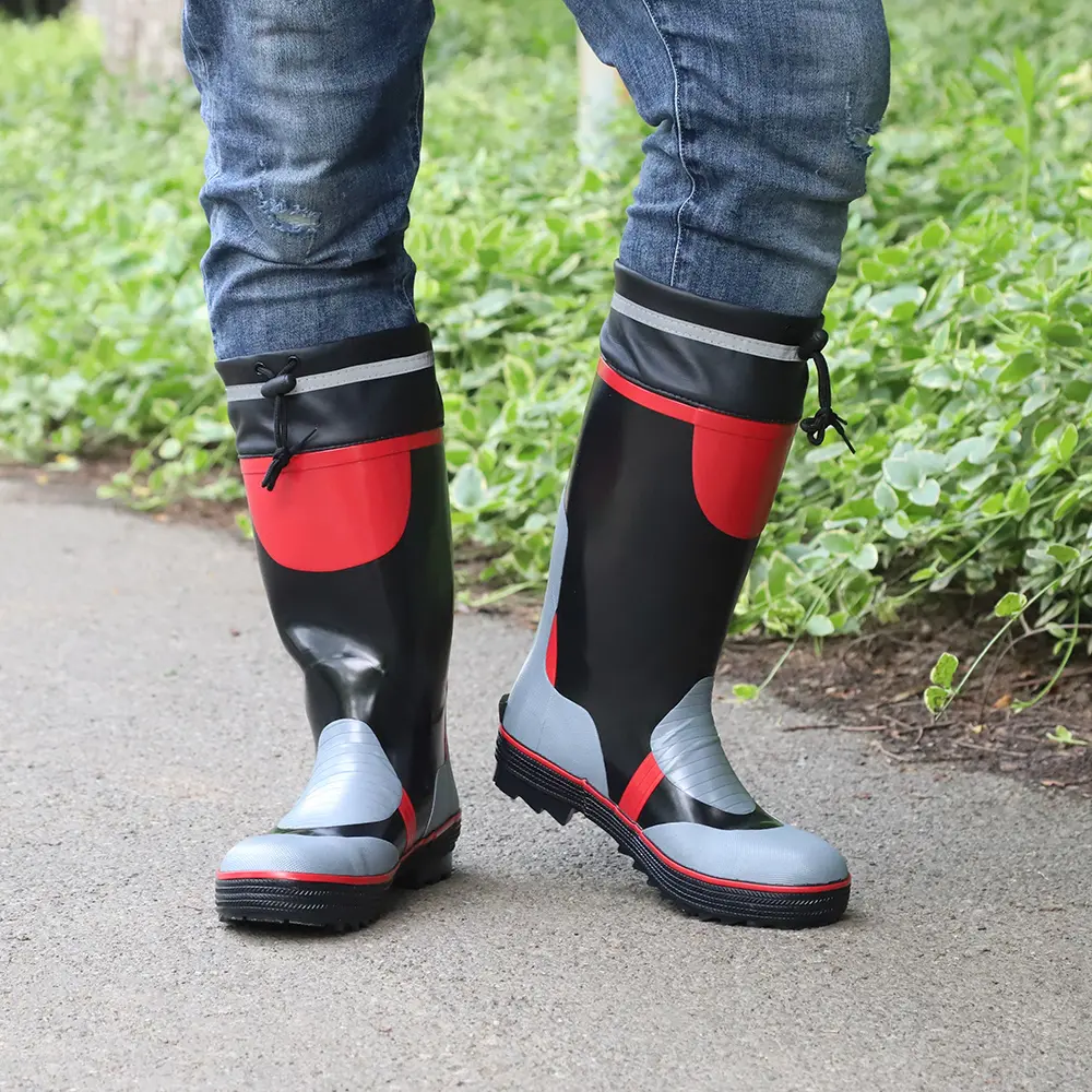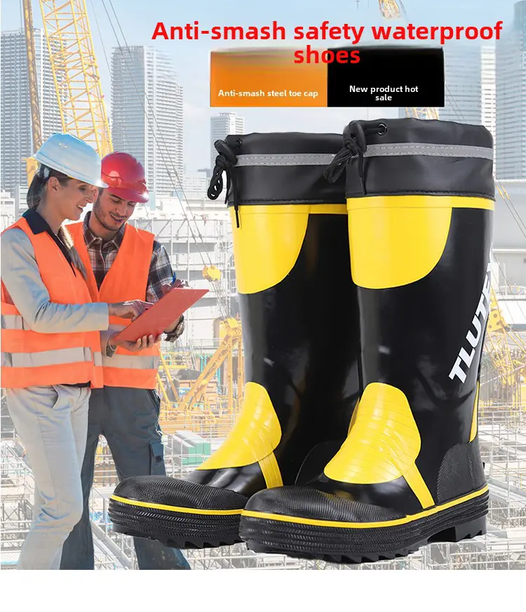New Spring Summer Steel Toe High Tube Breathable Anti Slip Waterproof Rain Boots Iron Head Slip Resistant Shoes Rubber Material