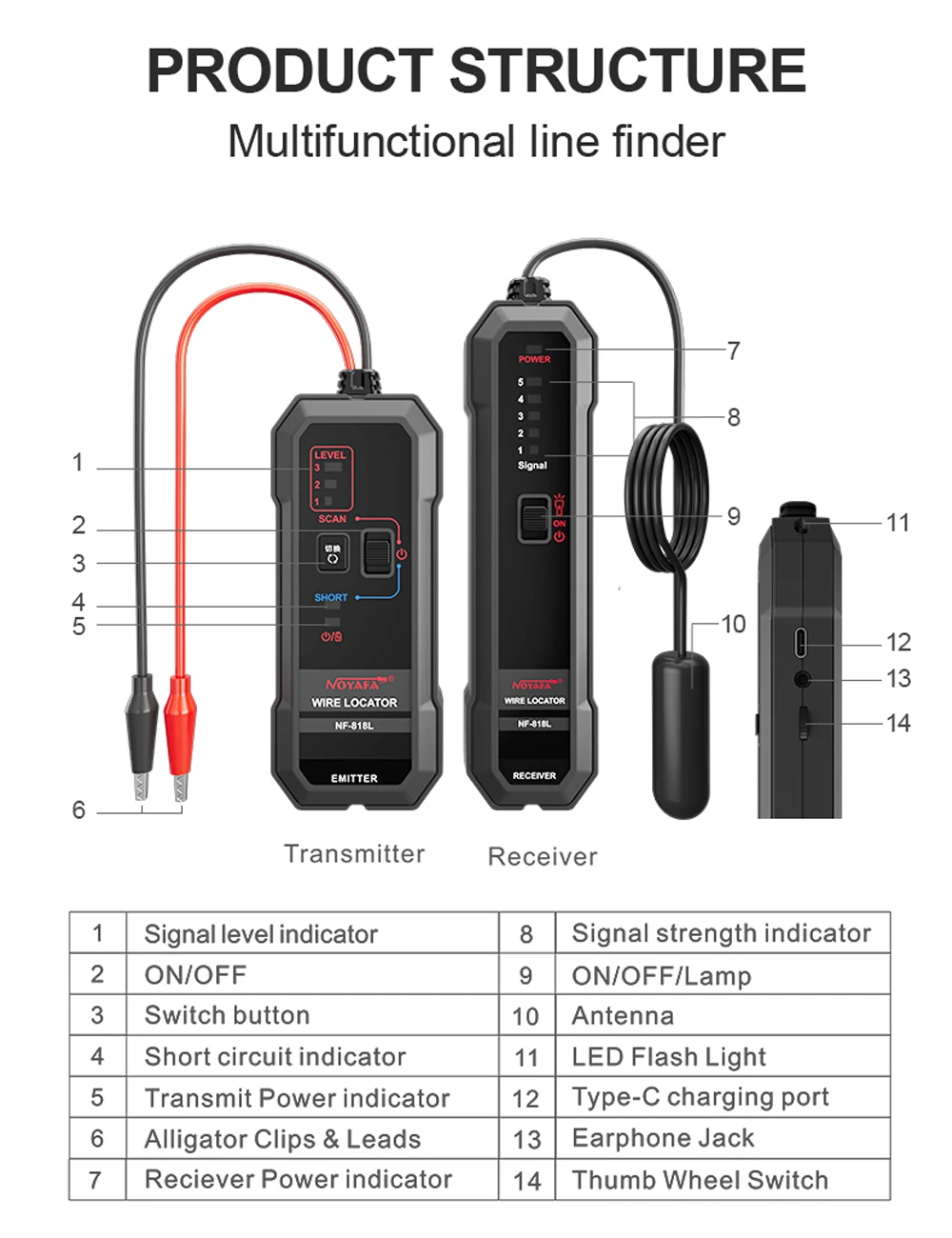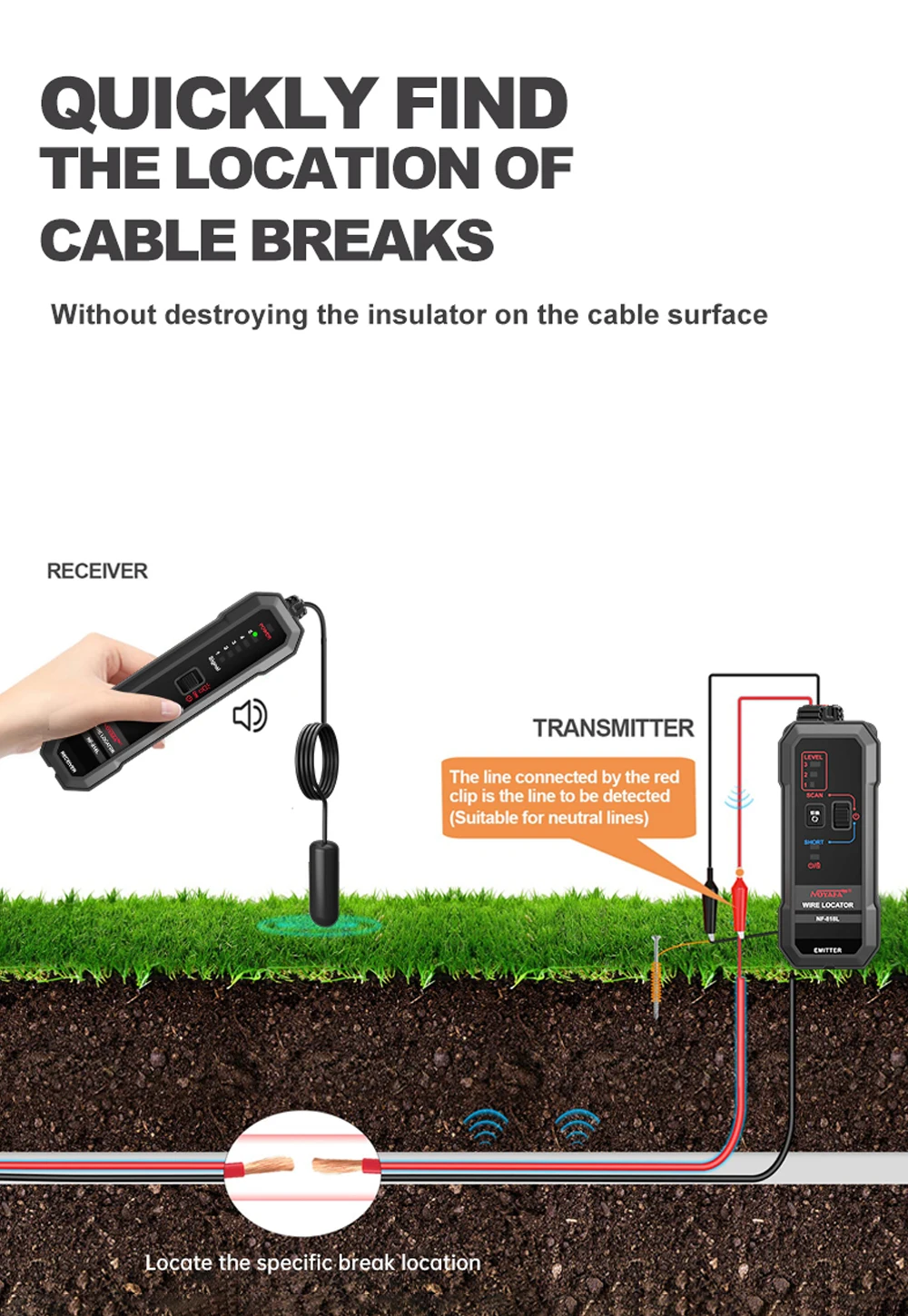 1.Do not use on live circuits to avoid damaging the Tester! Underground wire traceris only to locate a non-energized Cable.