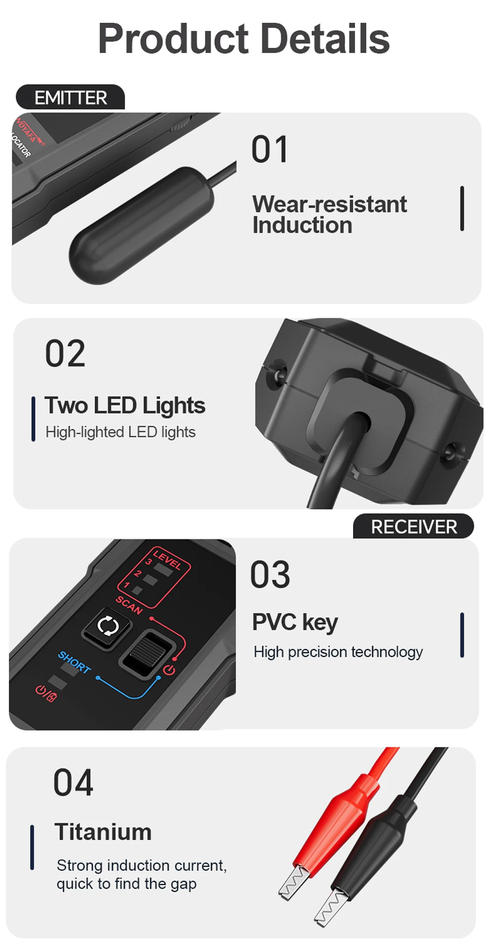 1. Locating & tracking buried and hiddenwires, quickly and accurately locate the break-point and direction of undergroundand wall-through cables.