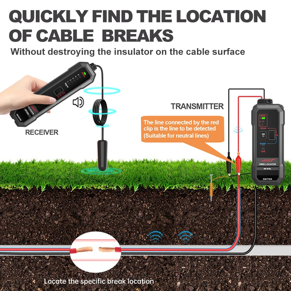 1.Do not use on live circuits to avoid damaging the Tester! Underground wire traceris only to locate a non-energized Cable.