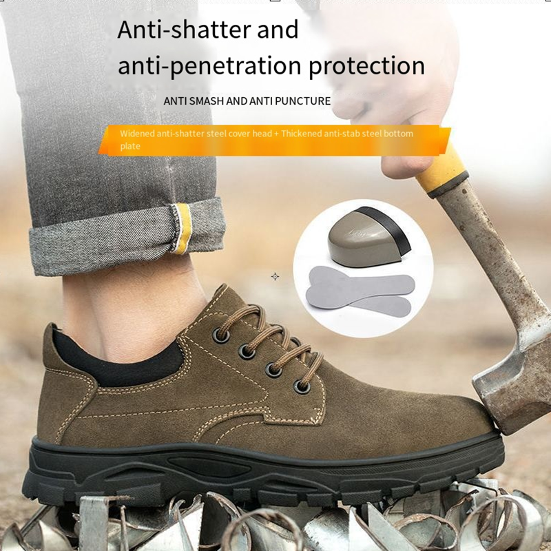 Oulylan New Safety Shoes Lightweight Breathable Anti Smashing Anti Piercing Steel Toe Wear-Resistant Welding Work Shoes