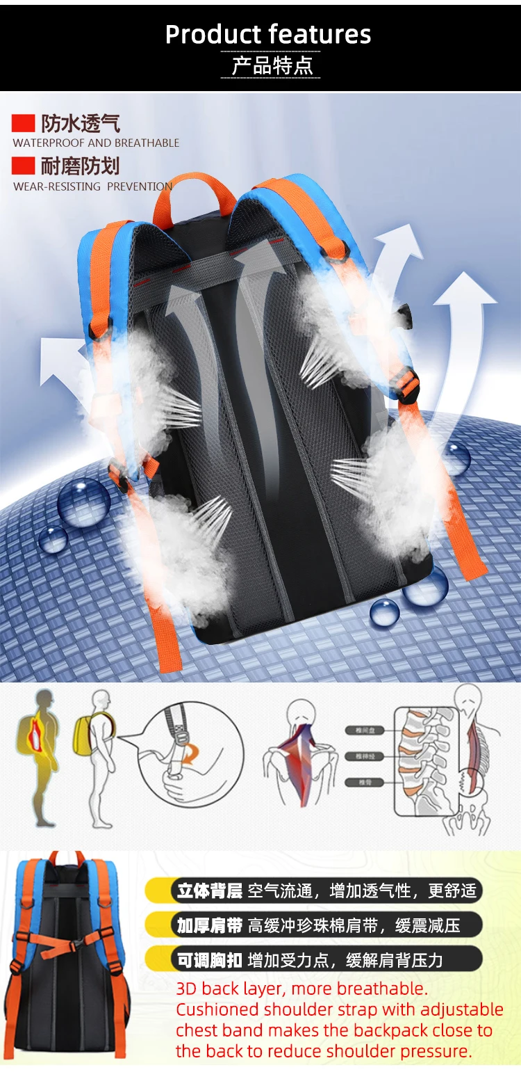 Outdoor Sports Long Distance Cycling Backpack Mountaineering Shoulders Bag Camping Travelling Knapsack Climbing Hiking Rucksack