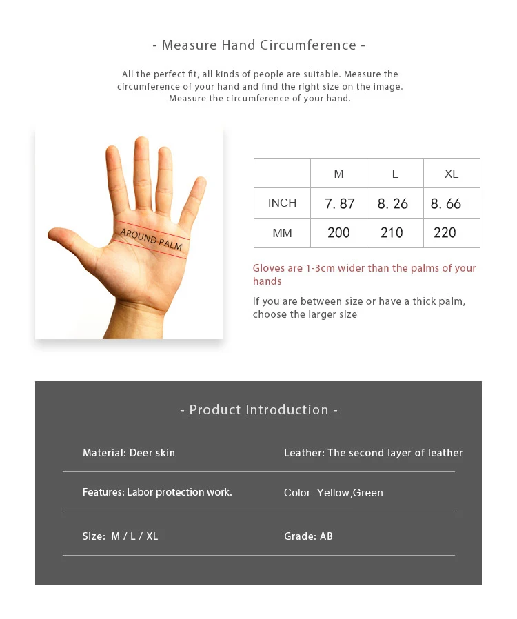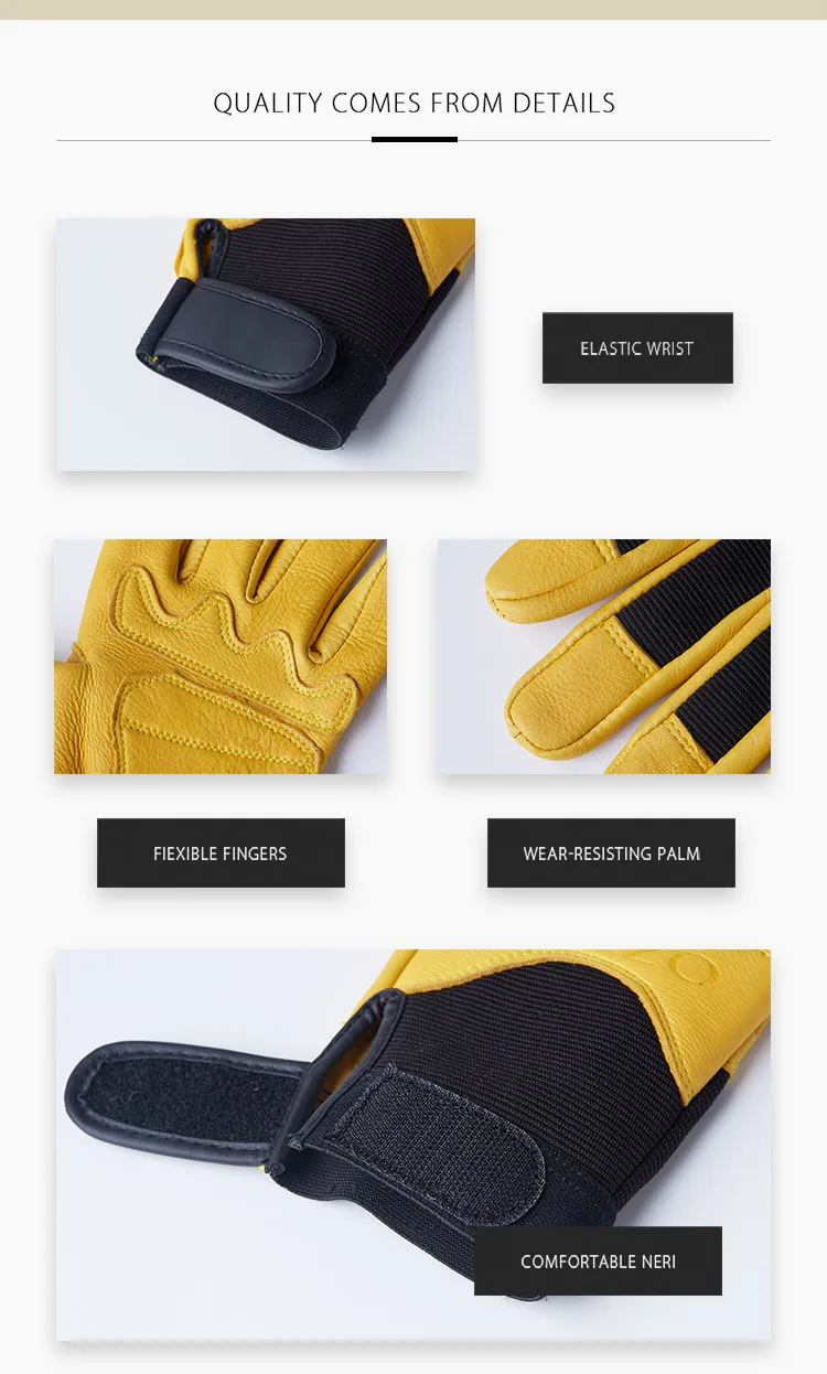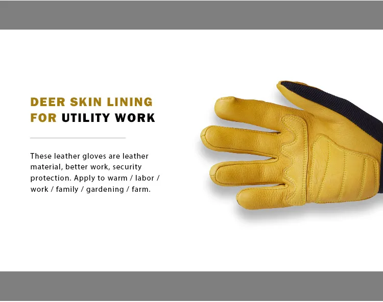 OZERO Men's Work Gloves Deerskin Leather Driver Security Protection Wear Safety Workers Working Racing Moto Gloves For Men 8001