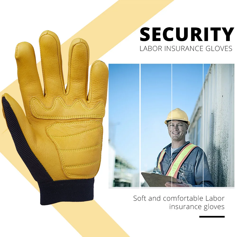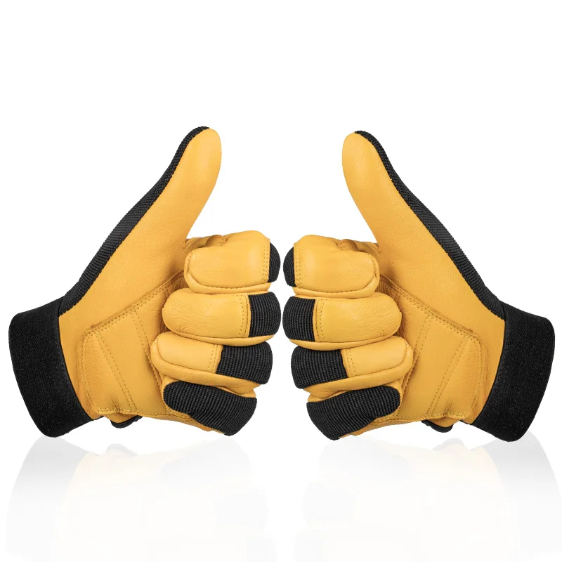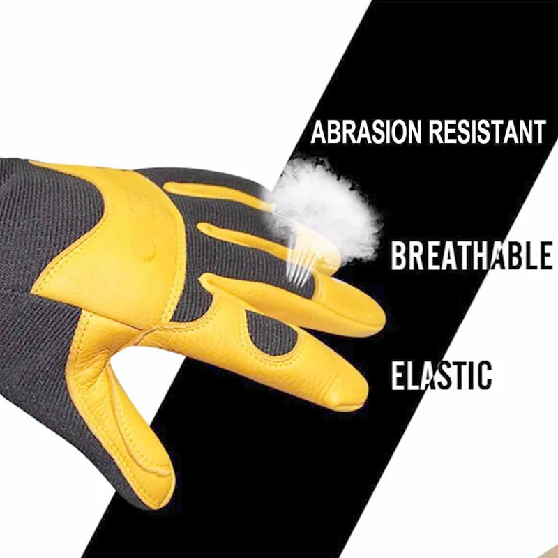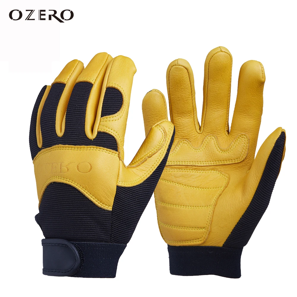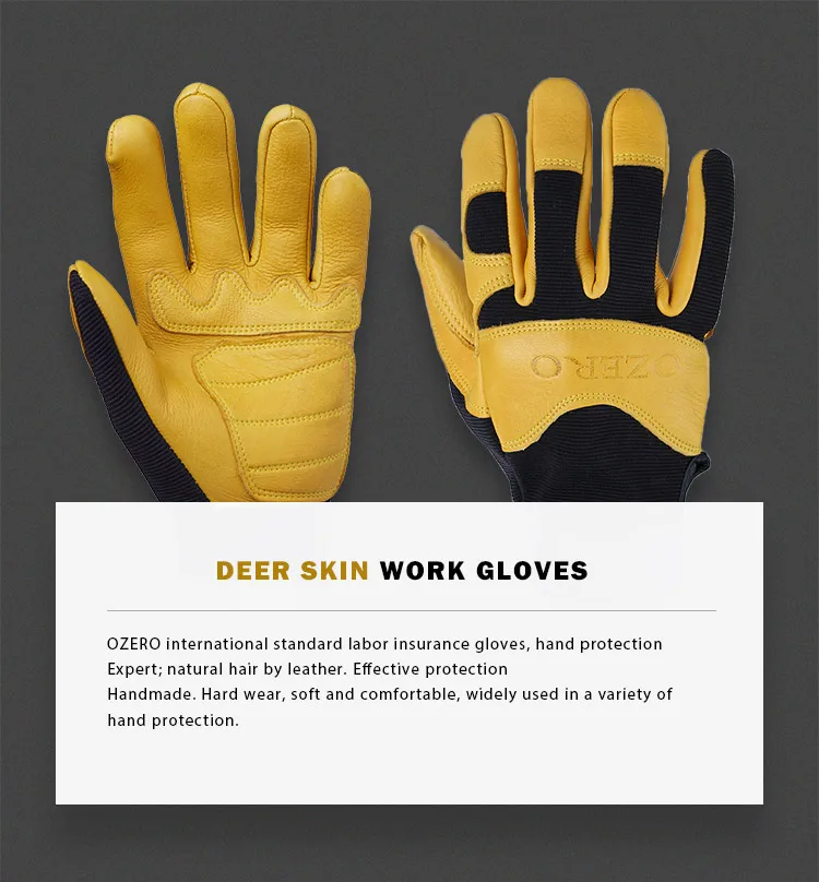 OZERO Men's Work Gloves Deerskin Leather Driver Security Protection Wear Safety Workers Working Racing Moto Gloves For Men 8001