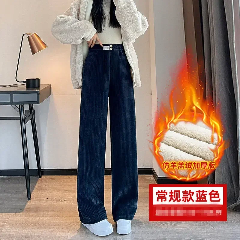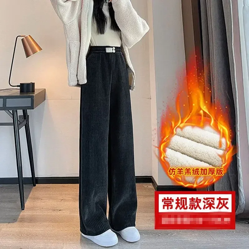 Pants Women Thickened Lamb Fleece Wide Leg Pants Plus Velvet Women’s Autumn Winter Fashion Loose Pants Cashmere Casual Pants