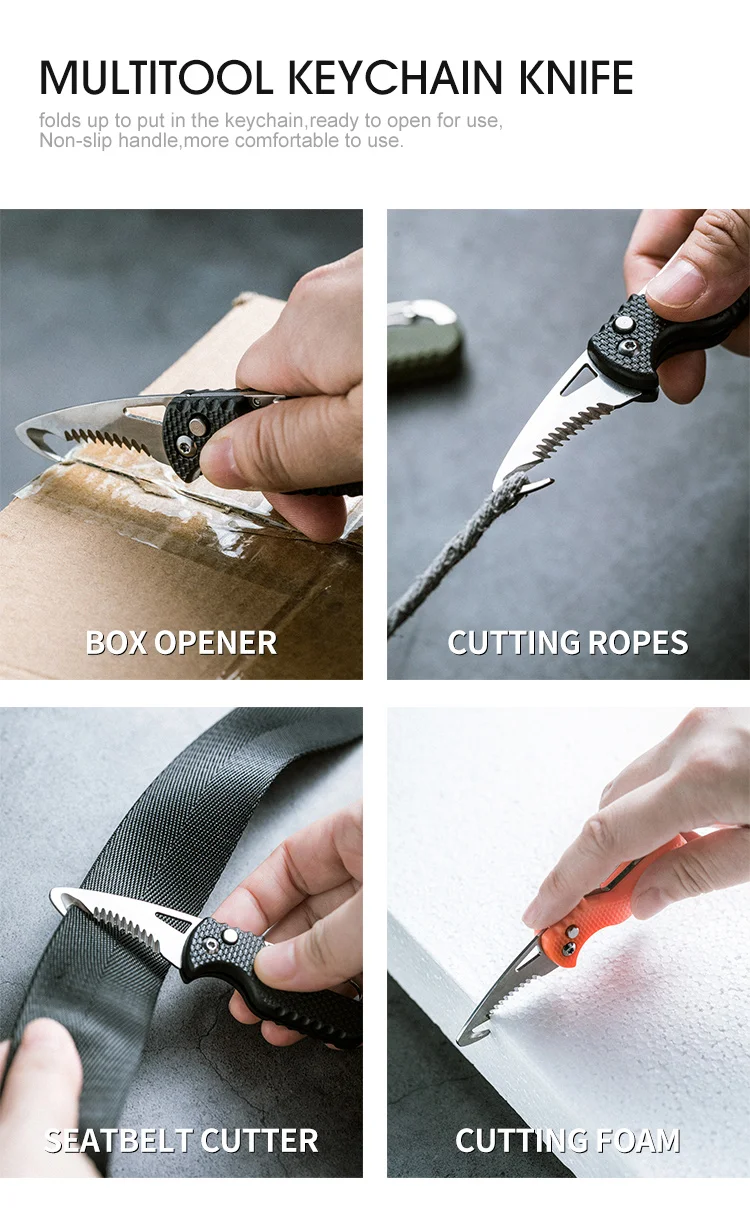 Portable Multifunctional Knife Stainless Serrated Hook Open Express Parcel Small Pocket Box/Strap Cutter Emergency Survival Tool