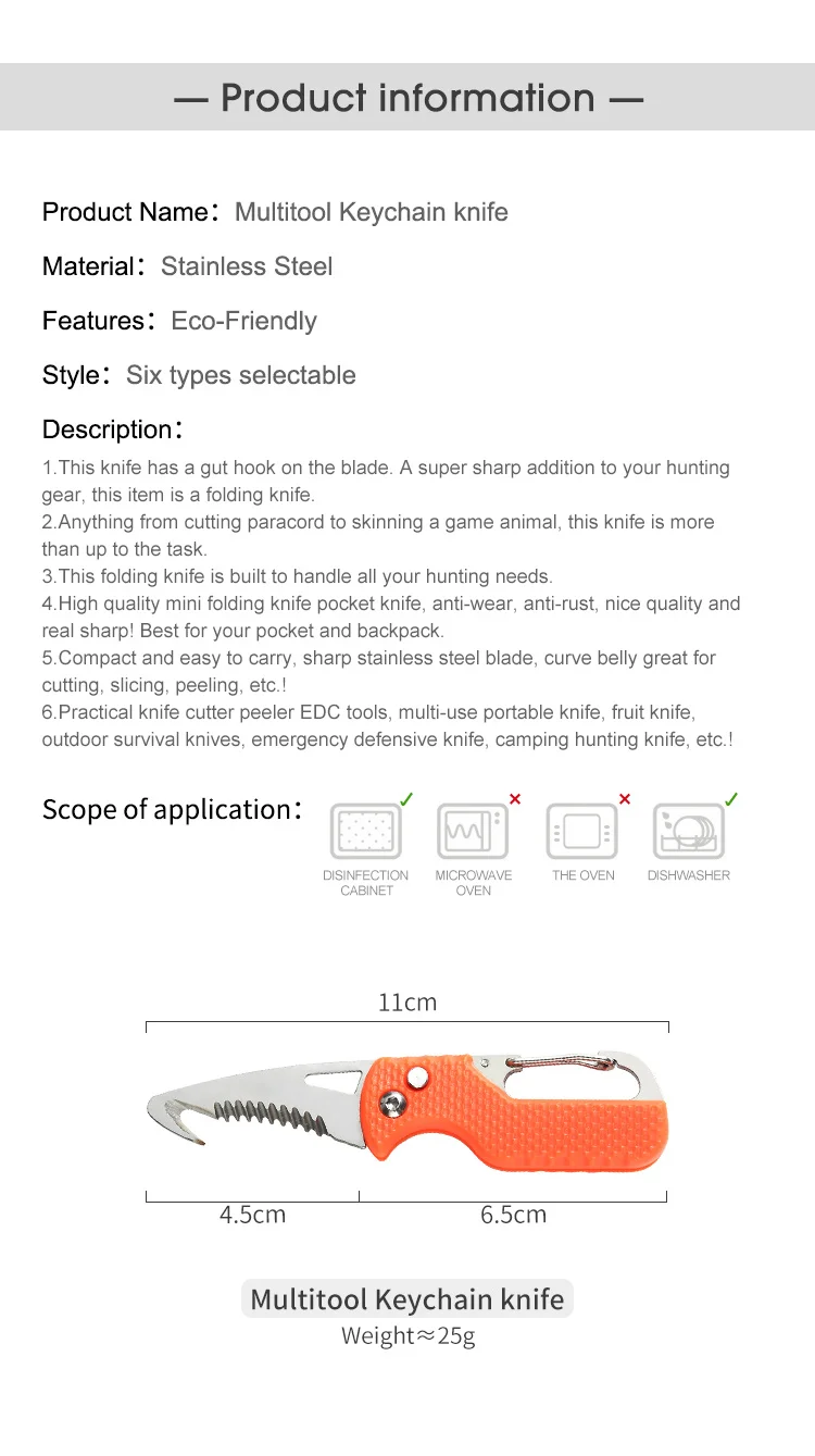 5. Compact and easy to carry, sharp stainless steel blade, curve belly great for cutting, slicing, peeling, etc.!