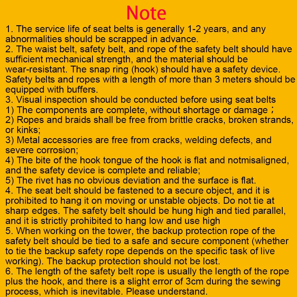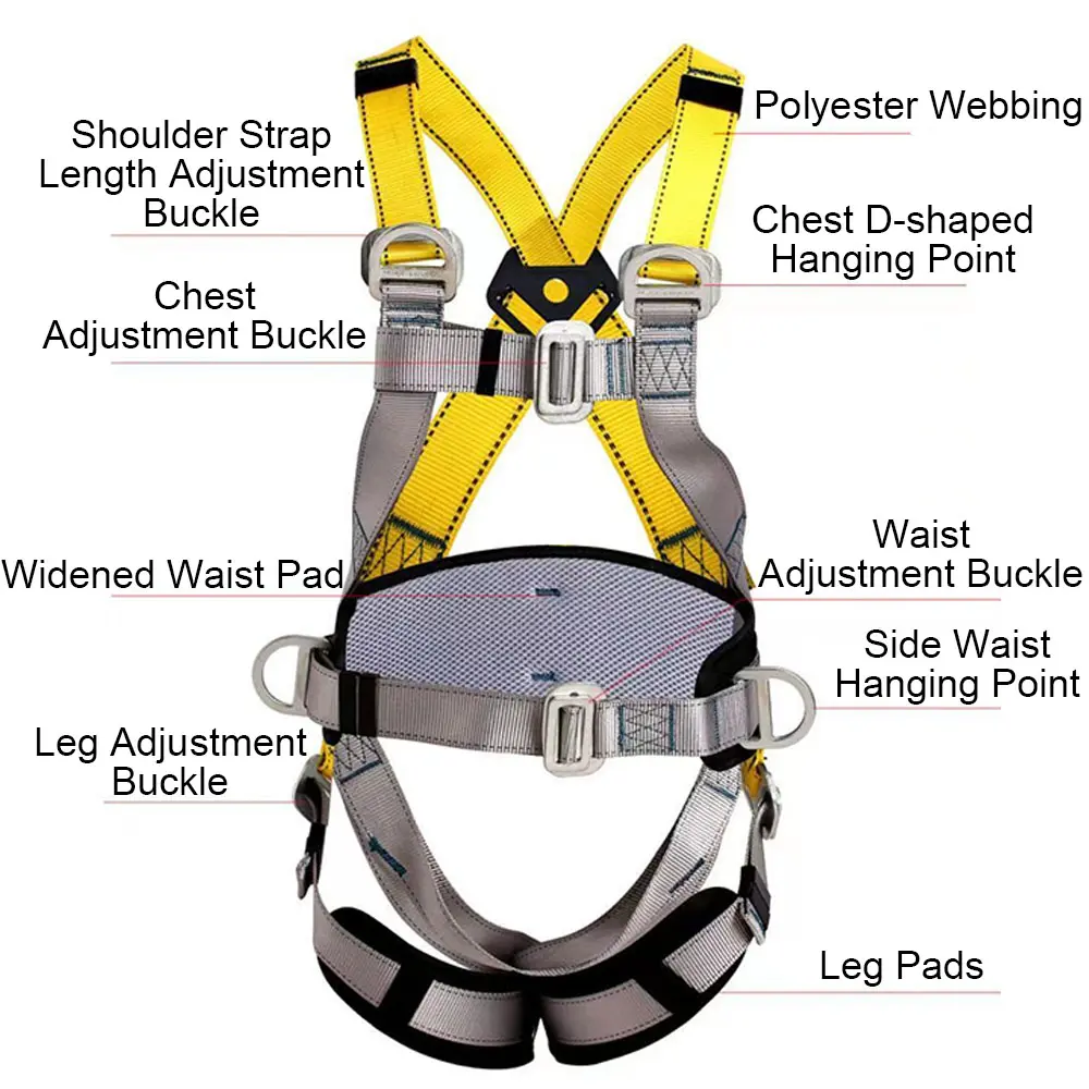 Material: Polyester/Alloy Steel Color Options: Black, Gray, Blue, Yellow Adjustable Waist Range: 95-150CM Ribbon Width: 4.5cm Overall Load-Bearing Capacity: 2600kg Applicable Scenarios: Power Construction, Mountain Climbing, High-Altitude Operations, Project Protection, External Wall Cleaning, Fire Rescue |Full Body Rope|Full Body Safety Harness Parts|Construction Construction Full Body Harness| ### Unmatched Safety and Versatility The Aerial Work Safety Belt is a pinnacle of safety equipment designed to provide full-body protection for workers in high-risk environments. Crafted from a robust blend of polyester and alloy steel, this safety harness is not only durable but also lightweight, ensuring comfort during extended use. Available in a range of colors including black, gray, blue, and yellow, it offers a professional look while maintaining functionality. ### Unparalleled Comfort and Flexibility This full body safety harness is engineered to be as comfortable as it is robust. The adjustable waist range of 95-150CM caters to a broad range of body types, ensuring a snug fit for every user. The 4.5cm wide ribbon provides ample space for attachment points, and the overall load-bearing capacity of 2600kg is a testament to its strength. Whether you're scaling a mountain, working on a construction site, or participating in a rescue operation, this safety harness is designed to keep you secure and agile. ### Designed for Extreme Conditions The Aerial Work Safety Belt is an indispensable tool for professionals in various industries. Its versatility extends from power construction to fire rescue, making it a reliable piece of equipment for a wide array of tasks. The safety harness is not only designed for strength but also for ease of use, with a quick-release buckle system that allows for swift and secure attachment. The safety rope buffer pack, which comes in yellow, black, or blue, is an additional layer of protection that adds to the overall safety of the harness. Whether you're on a construction site or scaling a cliff face, this full body safety harness is an essential piece of equipment that ensures your safety and efficiency in challenging environments.