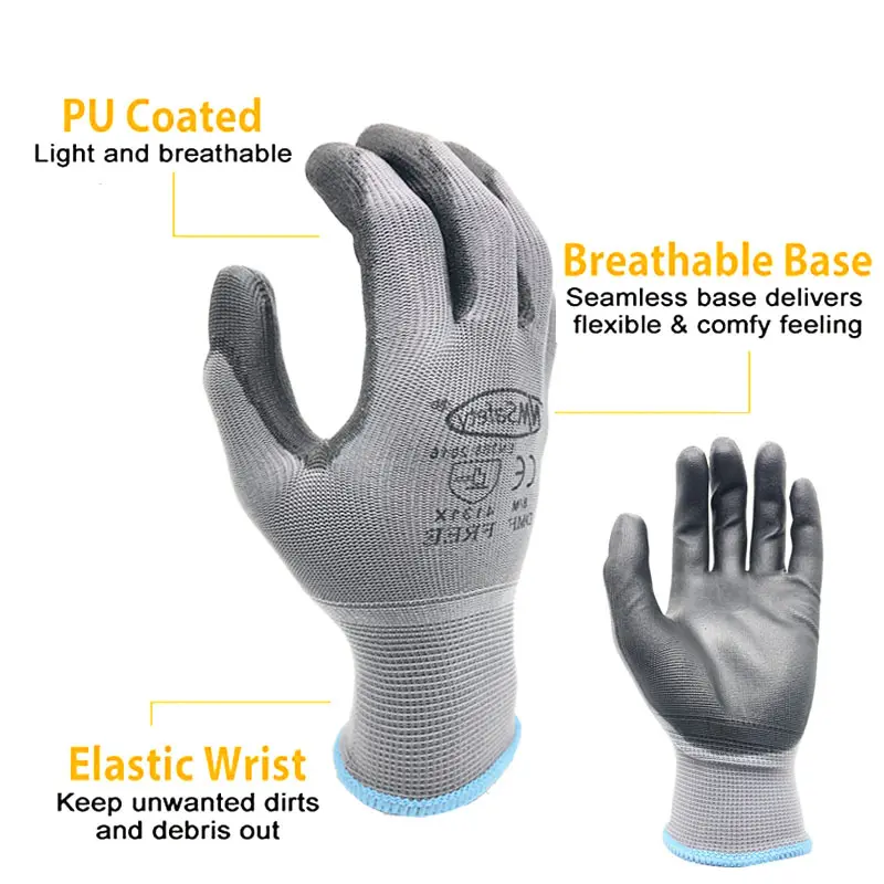 Coating Material: PU (polyurethane) Liner Material: 13 Gauge Knitted Nylon Liner Gloves Certificate: EN388 4131X HS CODE: 61161000 Classification: Working Gloves Drop Ship: Drop shipping available Material: Polyurethane Gloves Application: Warehouse Work, Gardening Industry, Repair Assembly, Electronic etc. **Durable Construction and Comfort** Crafted with a robust polyurethane coating and a 13-gauge knitted nylon liner, these safety working gloves are designed to withstand the rigors of industrial use. The EN388 4131X certification ensures they meet high standards for cut resistance, abrasion, and tear strength, making them an ideal choice for a variety of applications. The gloves' superior durability allows for machine washability, maintaining their shape and performance over time. **Versatile Usage and Protection** Whether you're handling small parts in an electronics assembly line or tending to your garden, these gloves provide the necessary protection and dexterity. The black color of the gloves is not only stylish but also helps conceal dirt, making them suitable for a range of tasks. The breathable design reduces sweat, ensuring a comfortable grip and enhanced productivity. The gloves are also machine washable, simplifying maintenance and extending their lifespan. **Safety and Convenience Combined** With a focus on safety, these gloves are designed to reduce the risk of hand injuries in various work environments. The CE test data confirms their compliance with EN388 standards, providing peace of mind for both the wearer and the employer. The drop shipping availability makes them a convenient option for businesses looking to supply their employees with reliable protective gear. Packaged in a convenient 24-piece set, these gloves ensure that you have a fresh pair at hand for every task, ensuring safety and efficiency in your work.