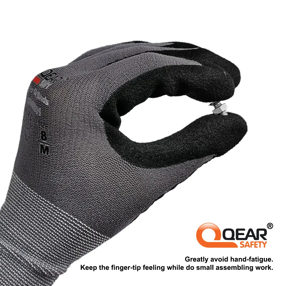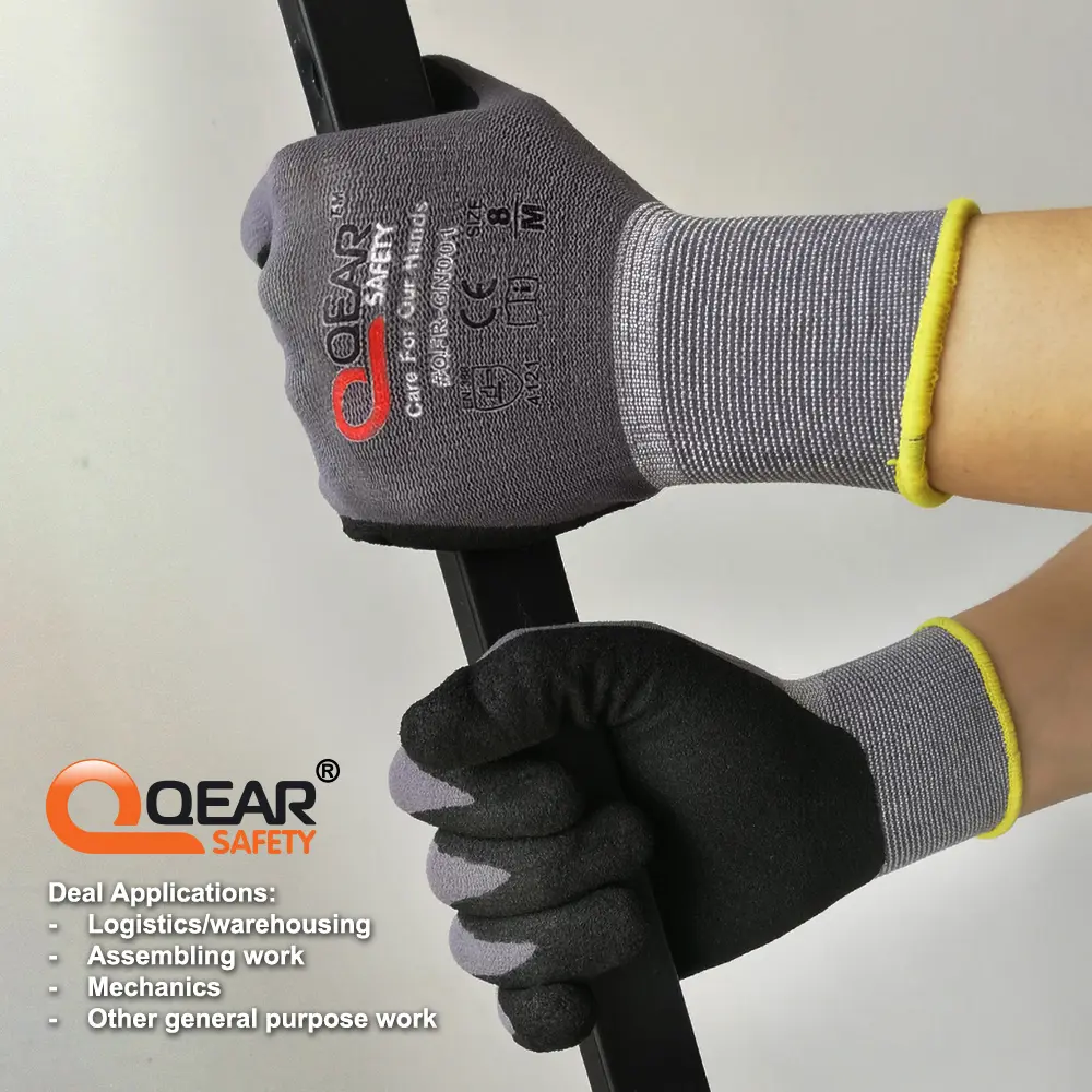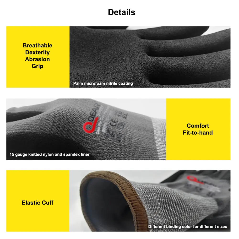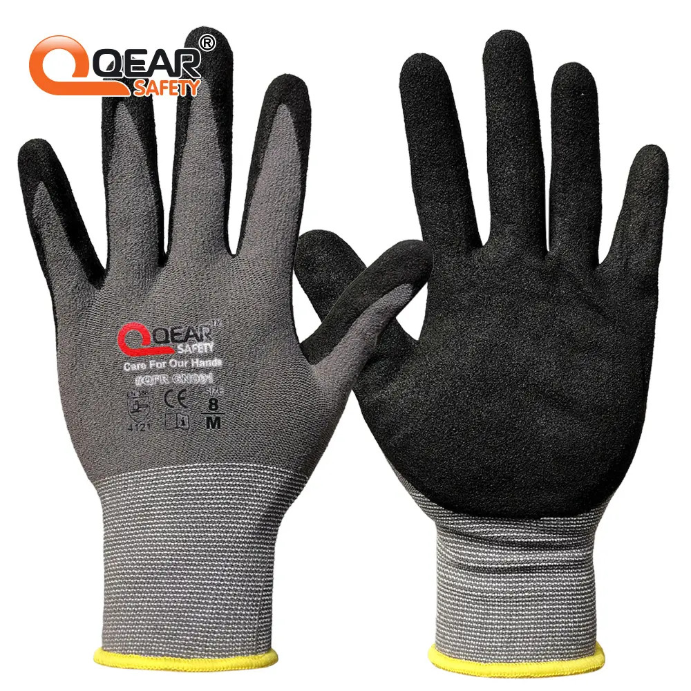 – Palm micro foam sandy nitrile rubber coated for soft, grip, abrasion, and breathablility.