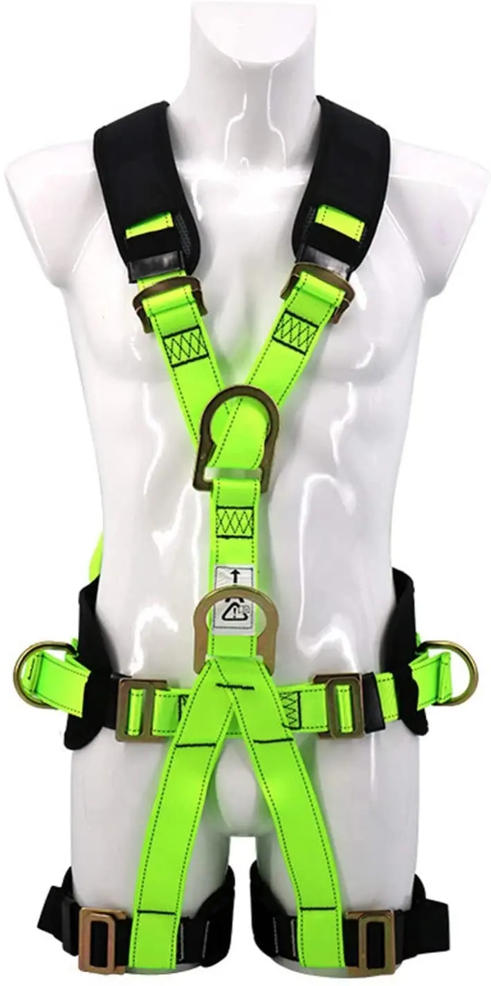 (1) Material: high strength polyester (2) Buckle material: forged steel (3) Waist adjustable from 75cm to 120cm (4) leg adjustable from 50cm to 70cm (5) Static tension: 15KN (6) Impact force: 6KN (7) Weight: 2.02KG (8) Standard(s): CE (9) Fits to work in dark environment or at night due to the reflective webbing (10) Application(s): work at height,construction,rescue,wall cleaning and so on