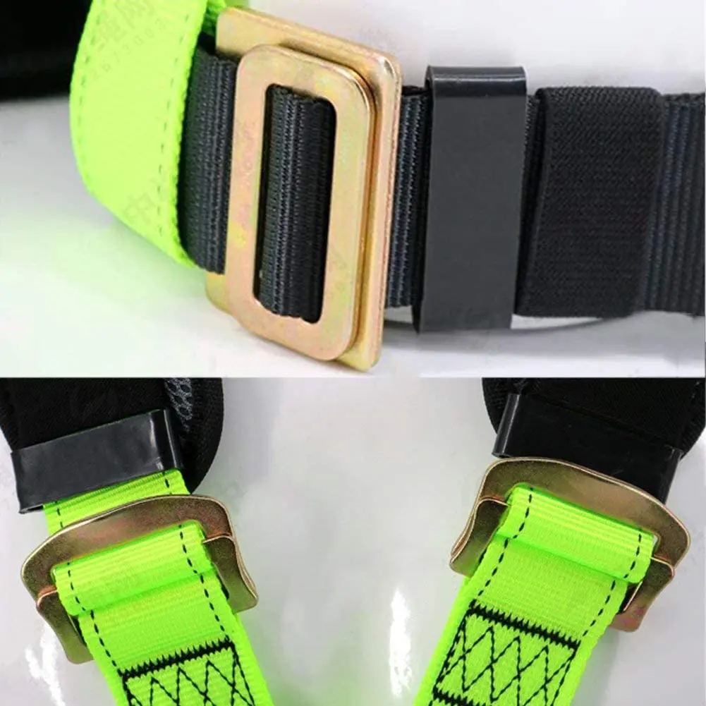 (1) Material: high strength polyester (2) Buckle material: forged steel (3) Waist adjustable from 75cm to 120cm (4) leg adjustable from 50cm to 70cm (5) Static tension: 15KN (6) Impact force: 6KN (7) Weight: 2.02KG (8) Standard(s): CE (9) Fits to work in dark environment or at night due to the reflective webbing (10) Application(s): work at height,construction,rescue,wall cleaning and so on