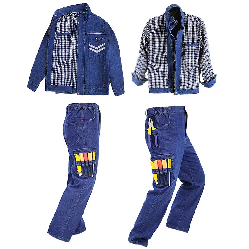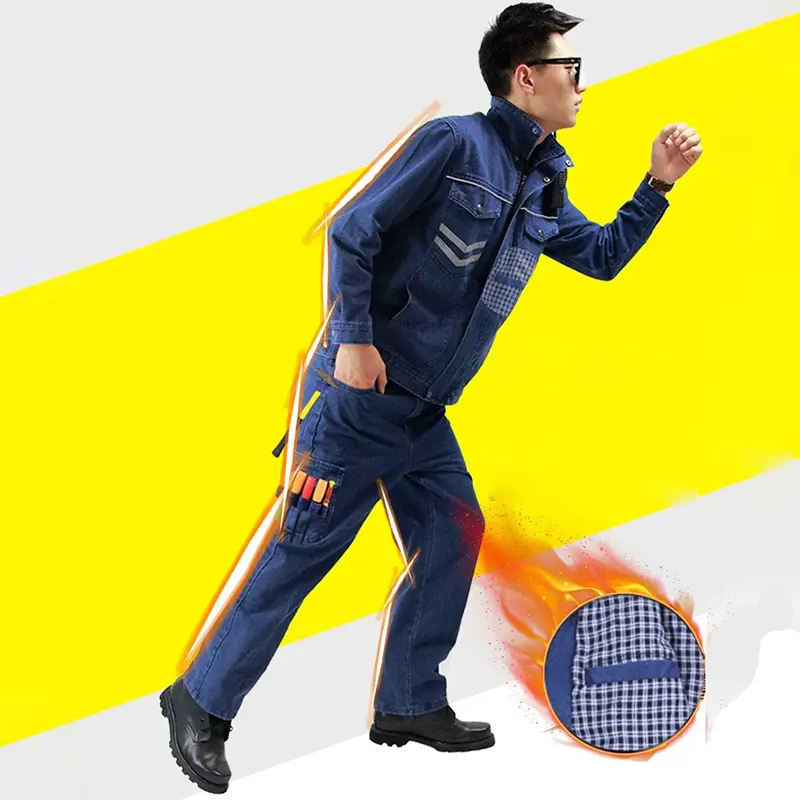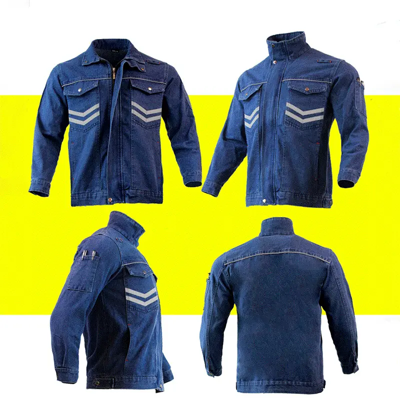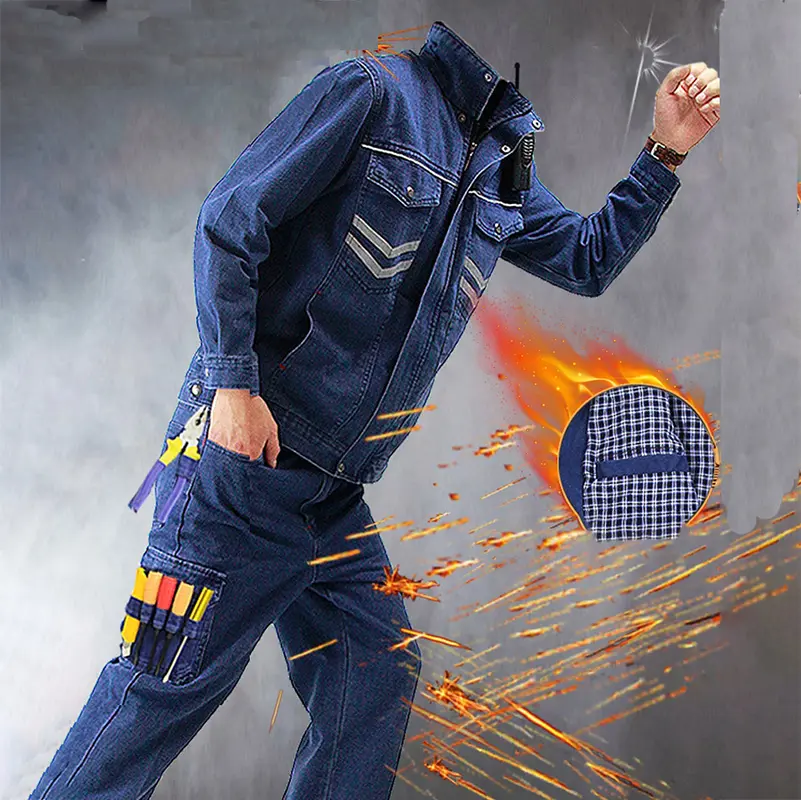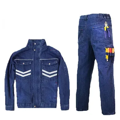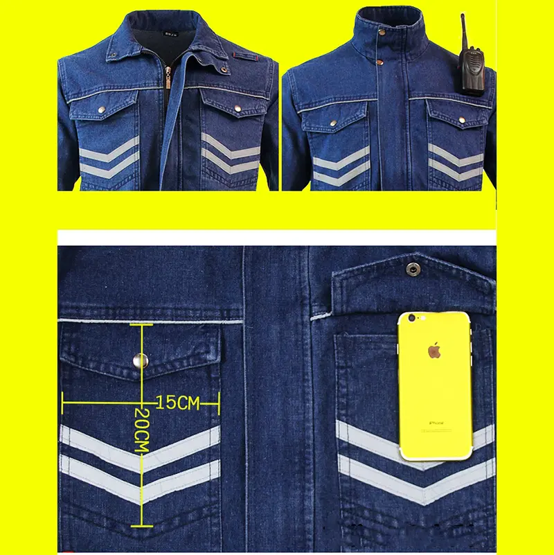 Reflective Welding Denim Protective Fire Retardant Clothing Anti-Sparkling Uniform Repair Worker Durable Workshop Work Coverall