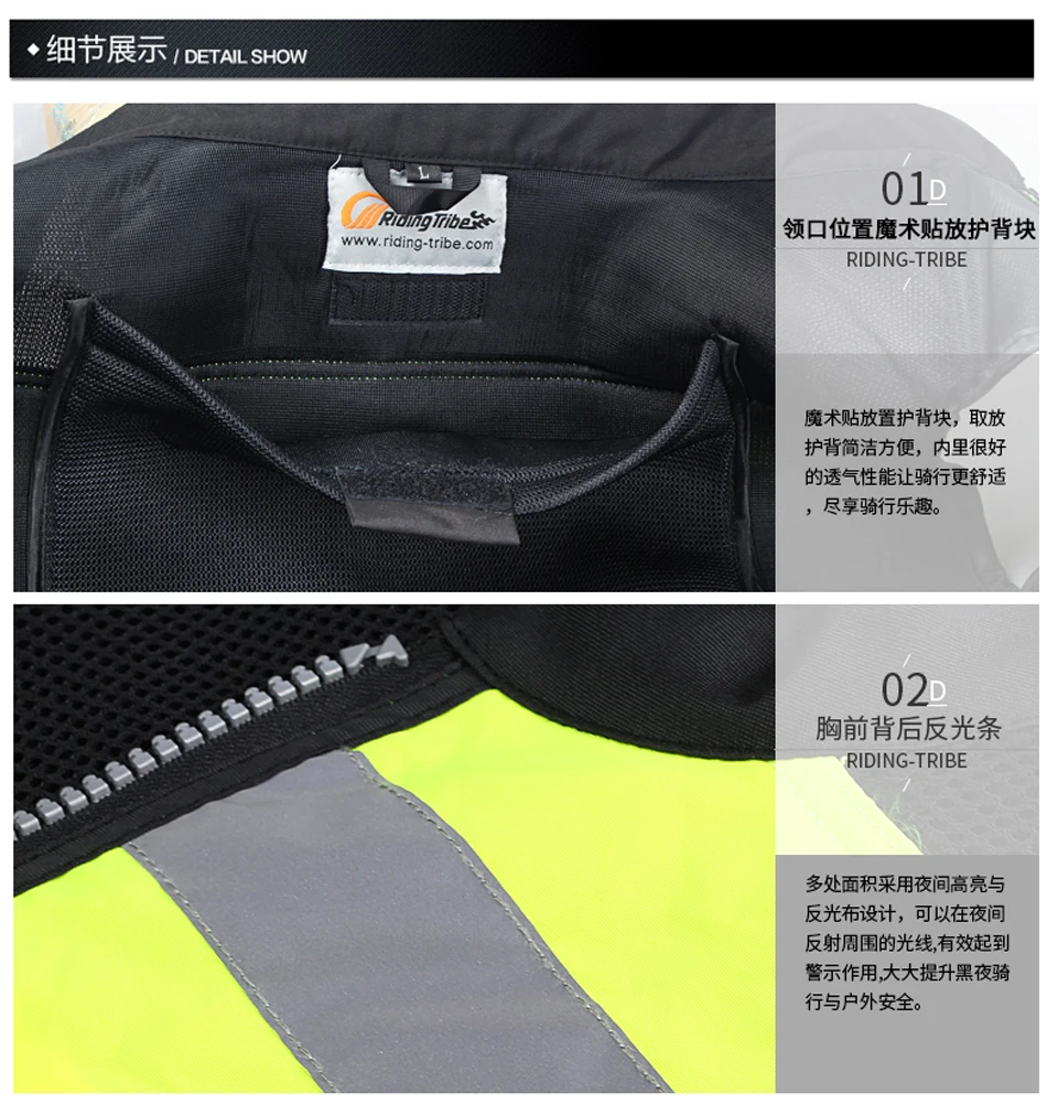 2.Reflective design on waist and back, this high visibility motorcyle jacket keeps you safe while riding at night.
