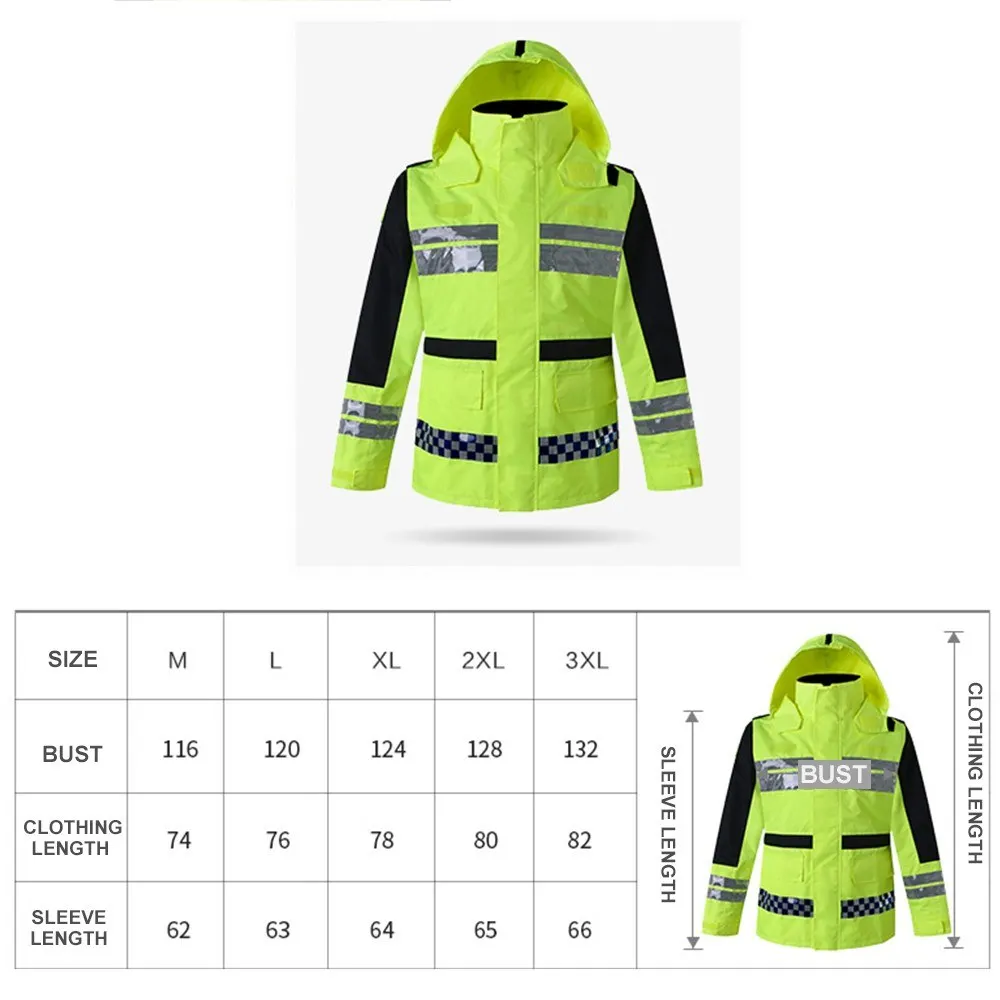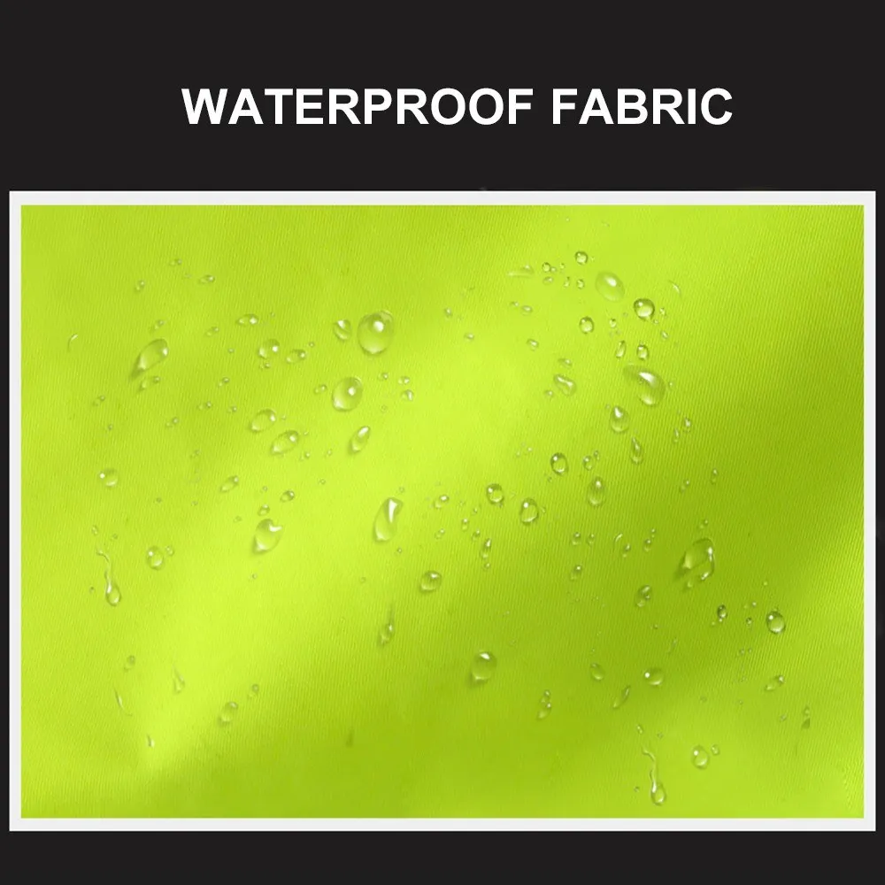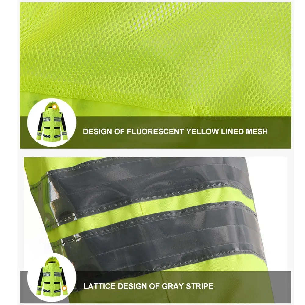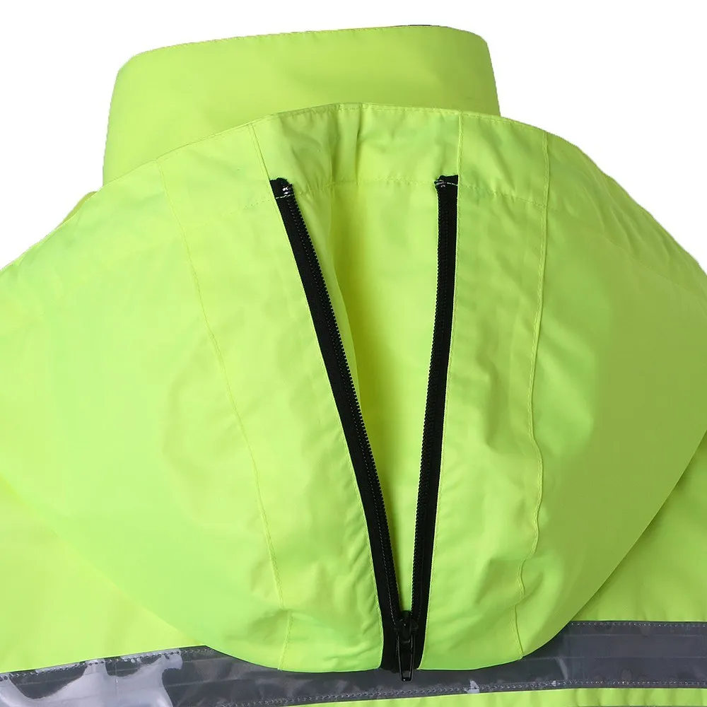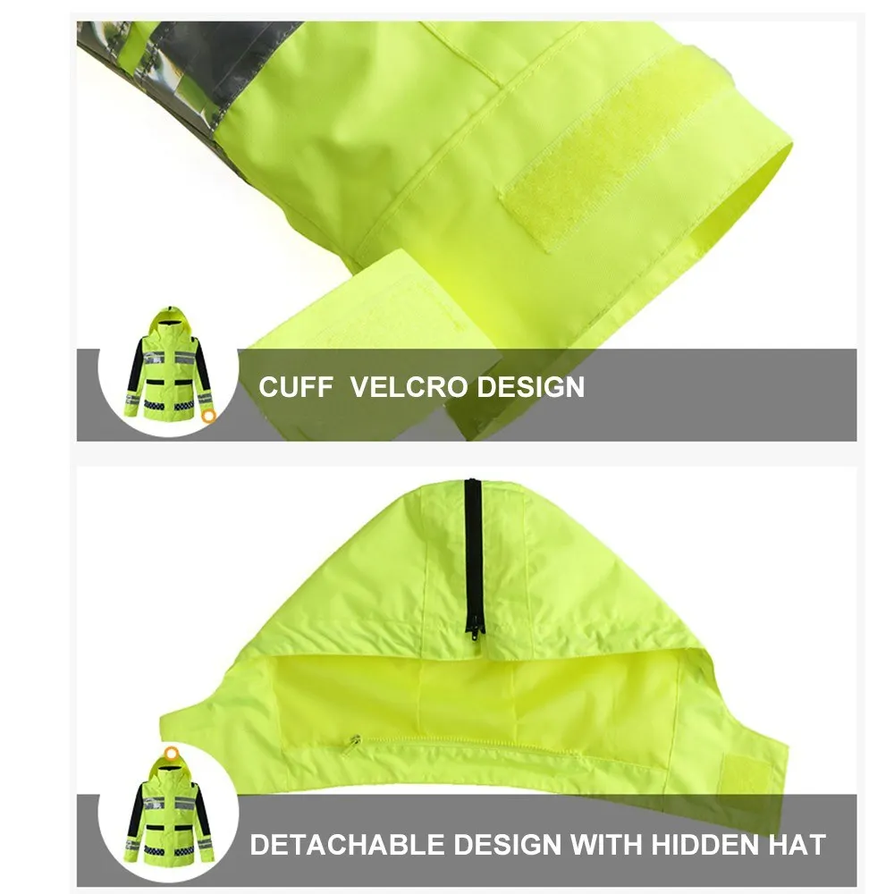 Safety Rain Jacket High Visibility Waterproof Reflective Raincoat with Detachable Hood Safety Raincoat Traffic Jacket for Adult
