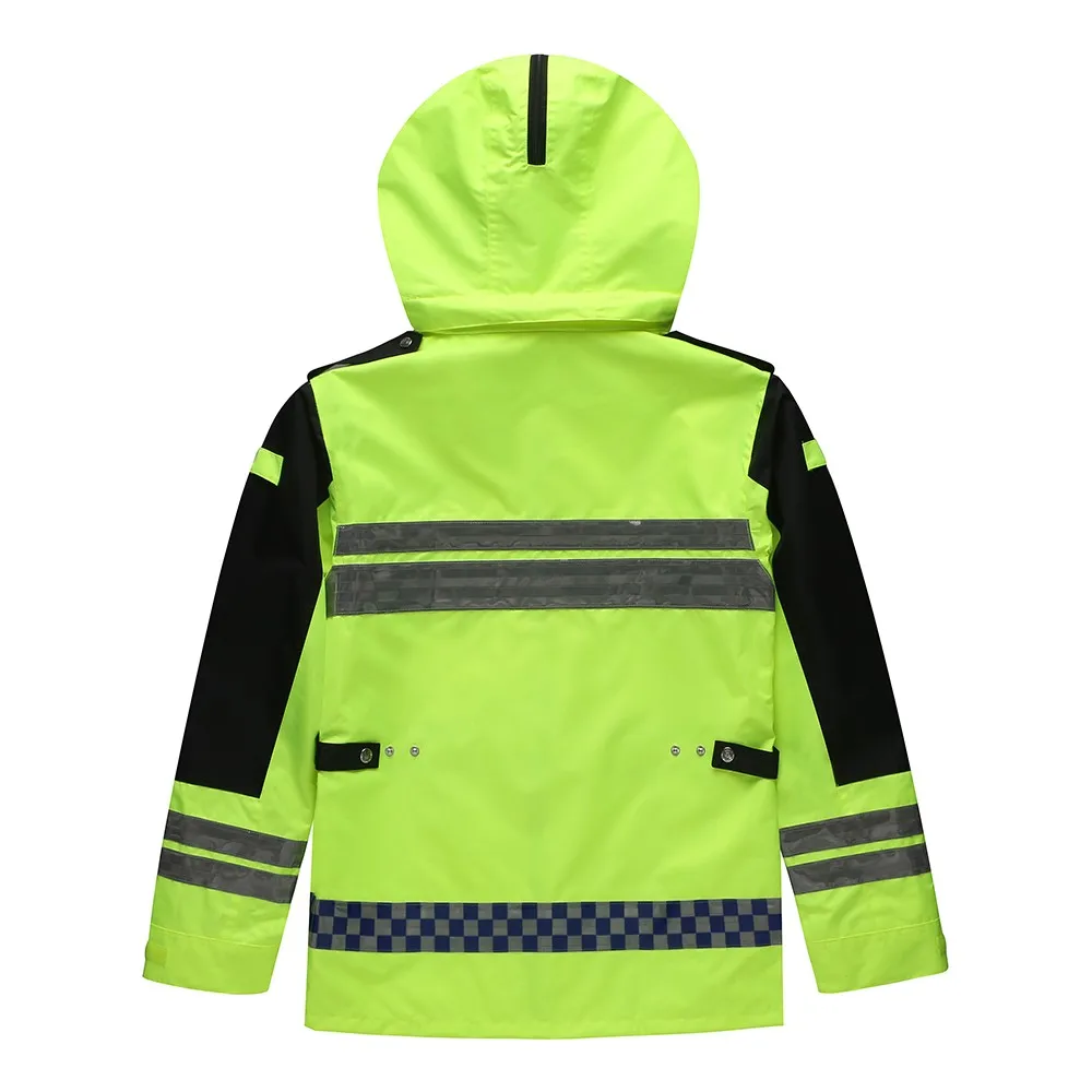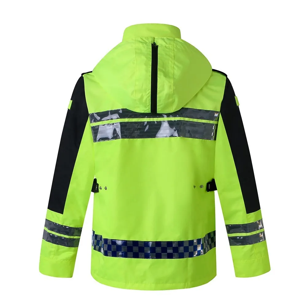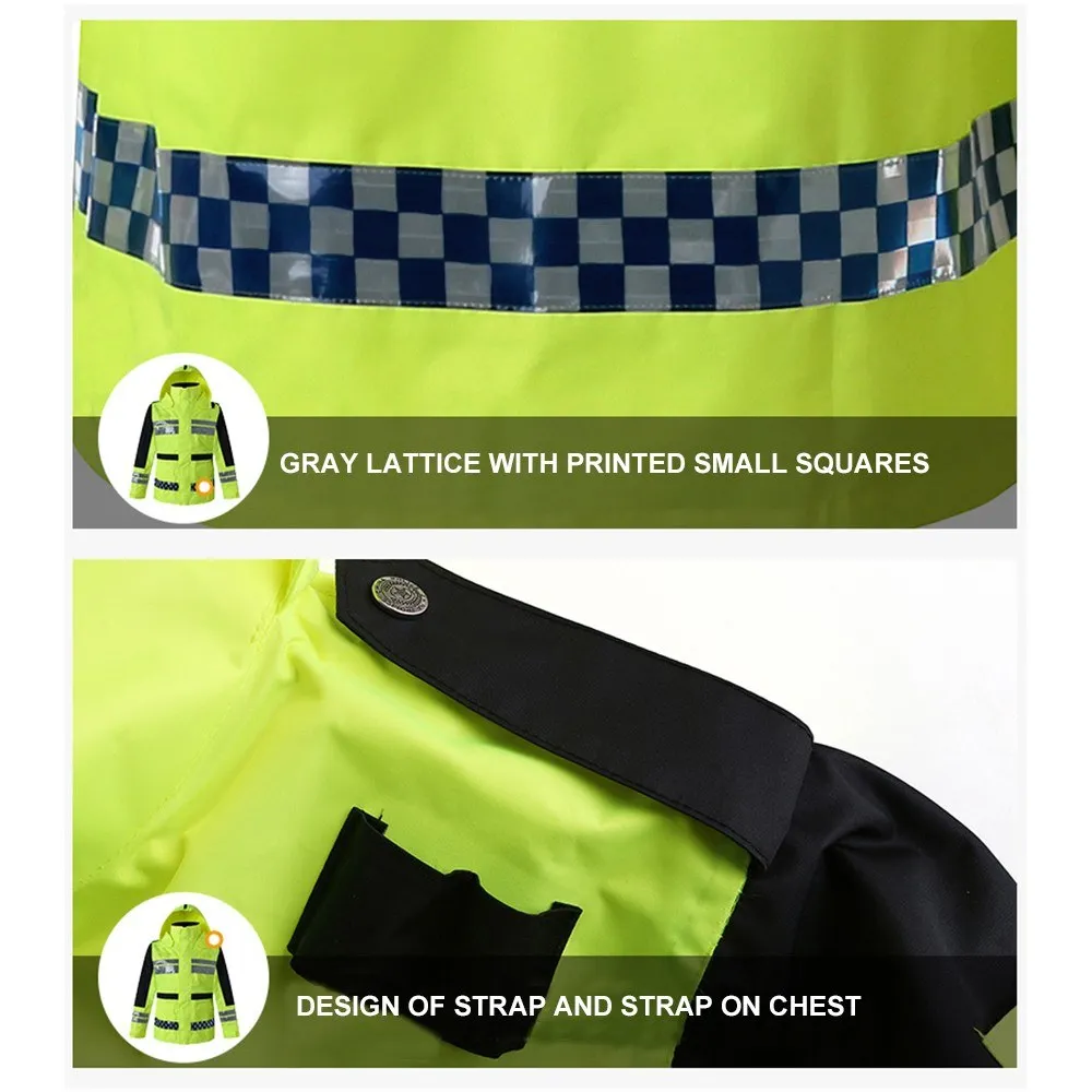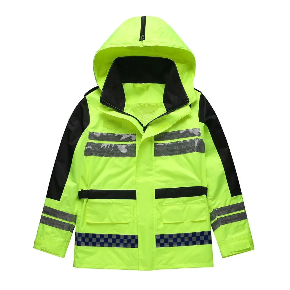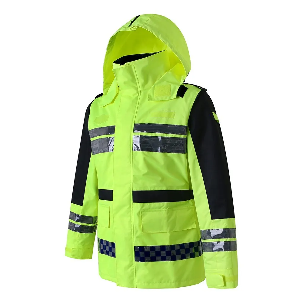 Safety Rain Jacket High Visibility Waterproof Reflective Raincoat with Detachable Hood Safety Raincoat Traffic Jacket for Adult