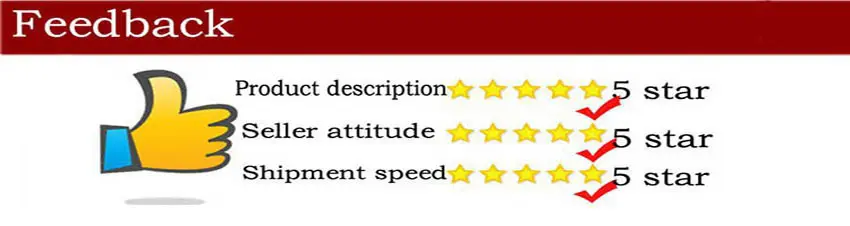 1. If you are satisfied with our products and service, please help to leave “Positive Feedback”and “5 Perfect Stars” for us when you receive your items and we will do the same for you.