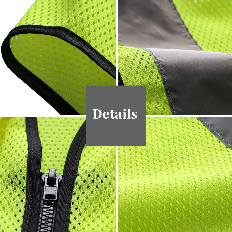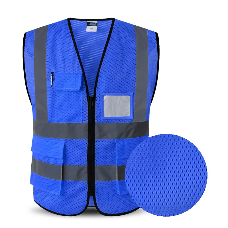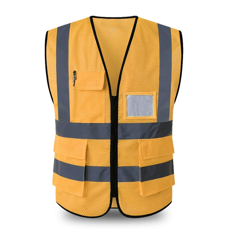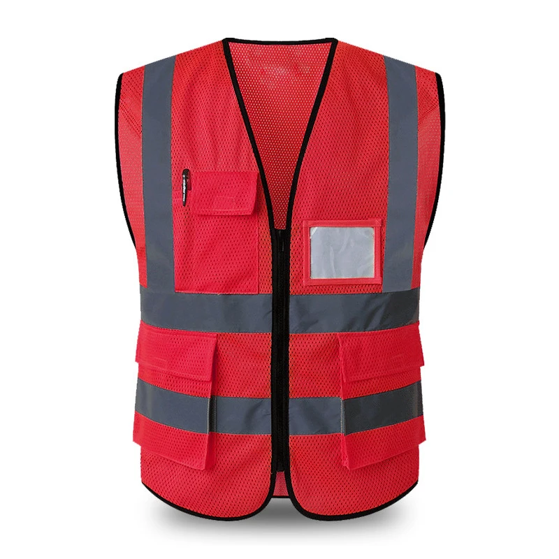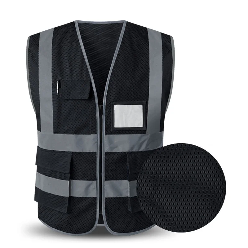 Safety Vest Reflective With Pockets Zipper High Visibility Reflective Stripes Multi Pockets Hi Vis Mesh Vest For Men And Woman
