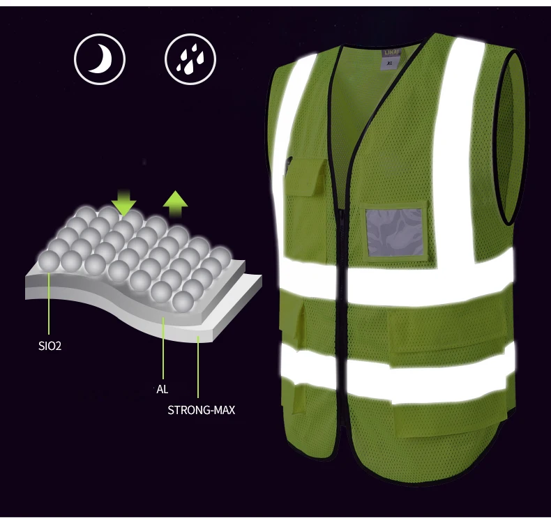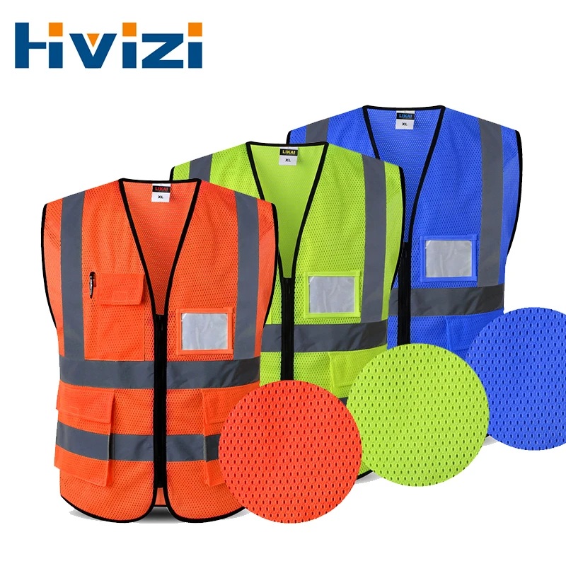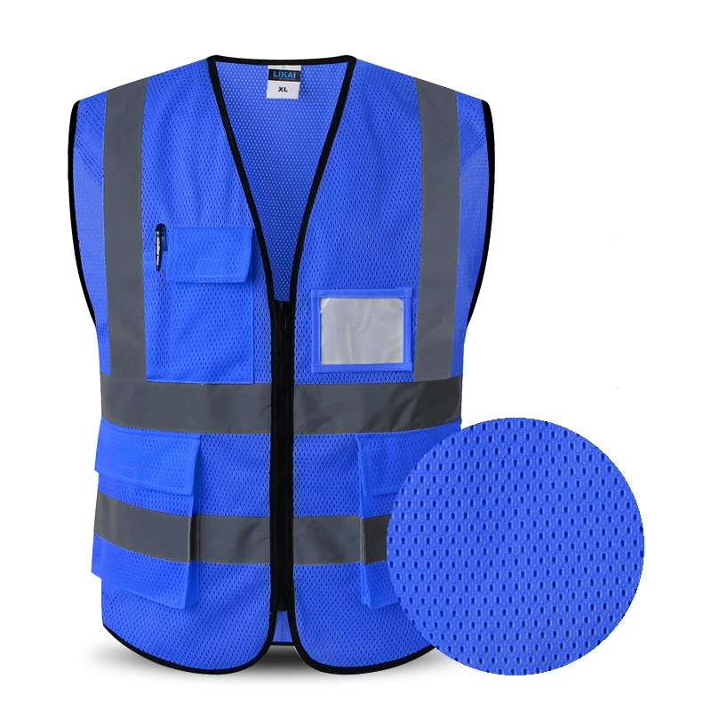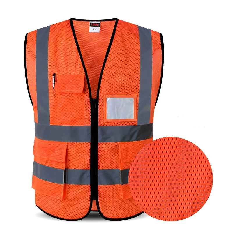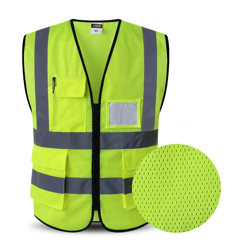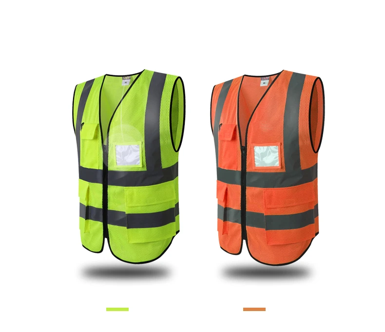 Safety Vest Reflective With Pockets Zipper High Visibility Reflective Stripes Multi Pockets Hi Vis Mesh Vest For Men And Woman