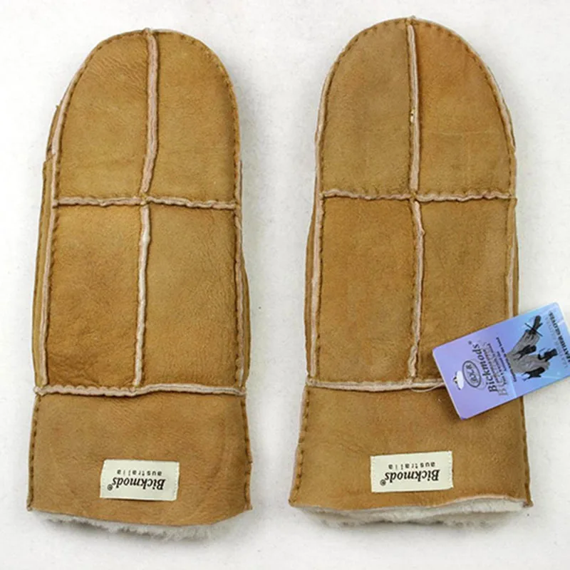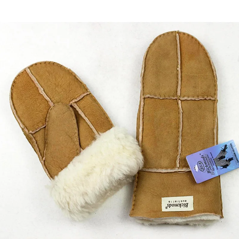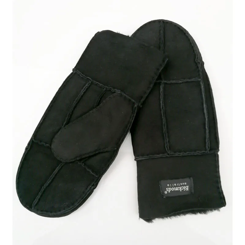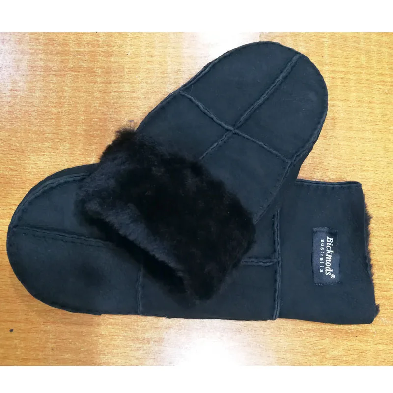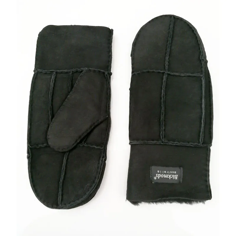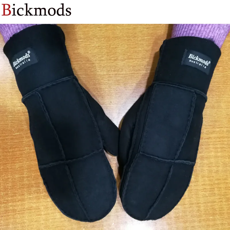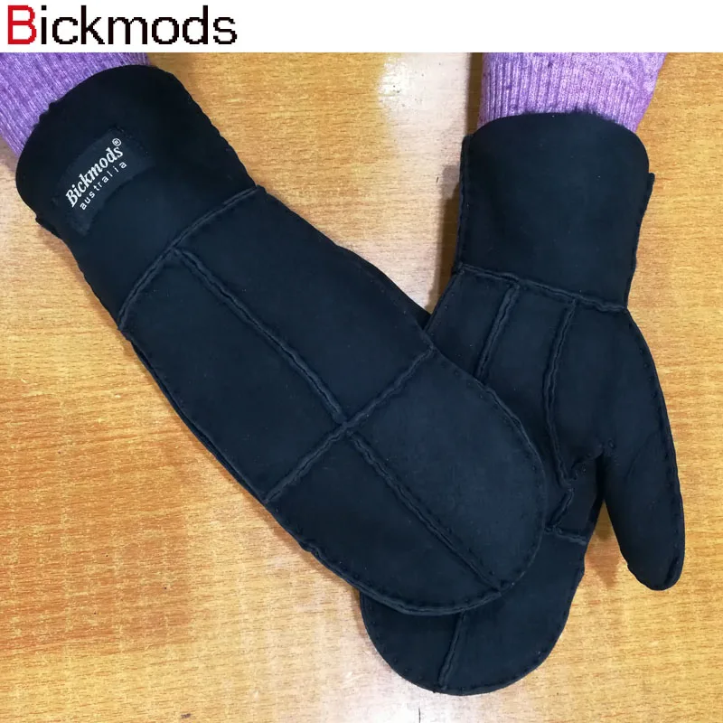 Sheepskin Fur Gloves Women’s Winter Cold Warm Men’s Leather Thicken Mittens Hand Sewn Black Sheepskin Wool