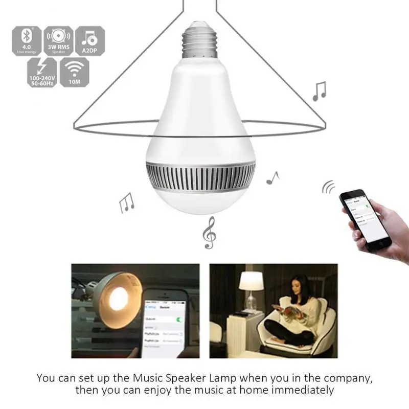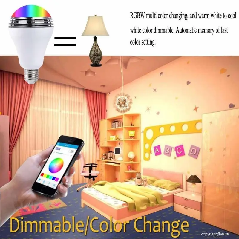 2-in-1: Wireless Bluetooth 4.0 Speaker + Smart Colour Changing LED Bulb, light colour can randomly change when music in playing