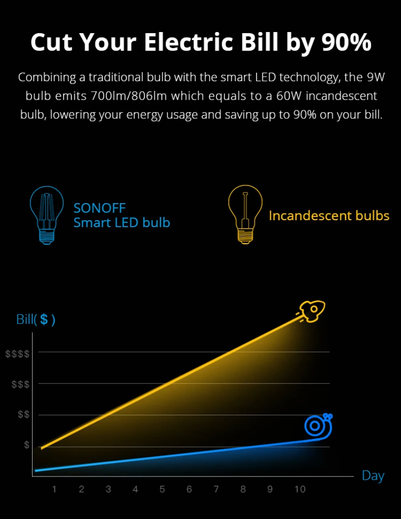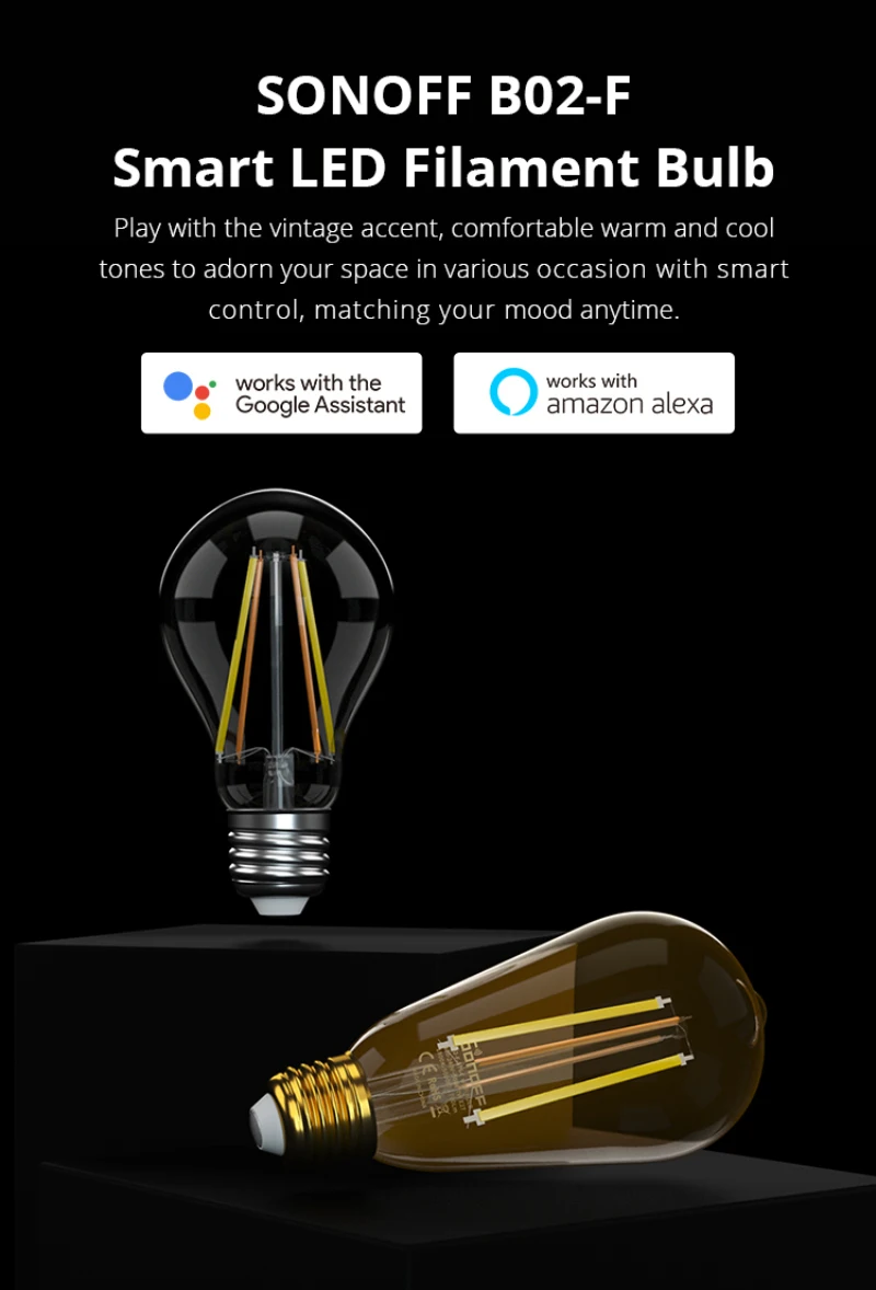 Want a quick and easy way to access a smart home and seek for less energy consumption on your smart home system? SONOFF B02-F-A60/B02-F-ST64 smart LED filament bulb exactly pairs both modern intelligence and LED efficiency, as well as vintage appearance. They’re trustworthy enough to turn all of your ideas into reality.