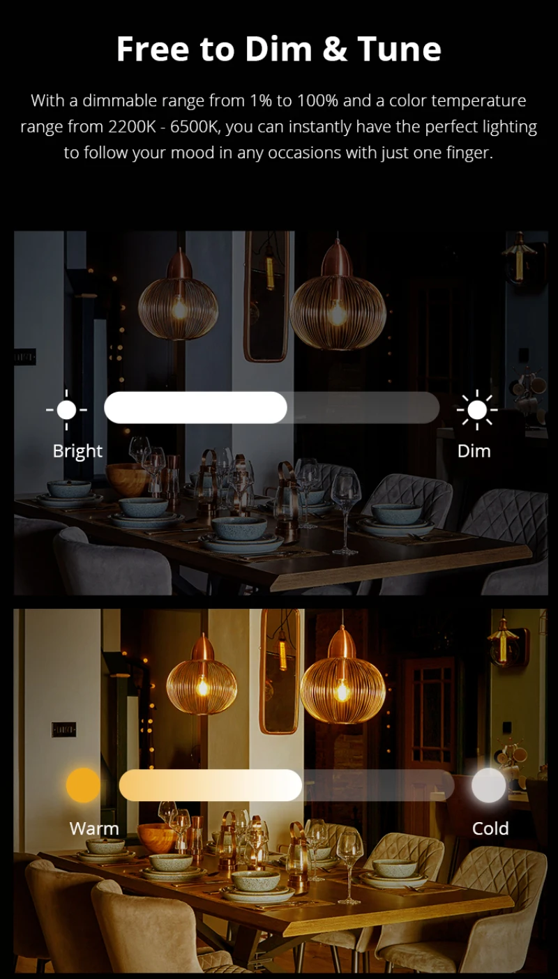 With B02-F smart bulbs, you can do more than remotely turn on and off using your smartphone and via your voice (connect with Alexa or Google Home), a typical feature that is automated schedule can make the bulb automatically turn on and off which helps save energy and reduce your monthly electricity bill. The bulb is dimmable that you can cool down or warm up it to set the mood you want in a room. Just by its design with 4 preset mode which simply selects the corresponding modes and you can get your desired atmosphere for your space. Group control is designed to help control the specific lighting of an or more areas, saving much time on running them respectively.