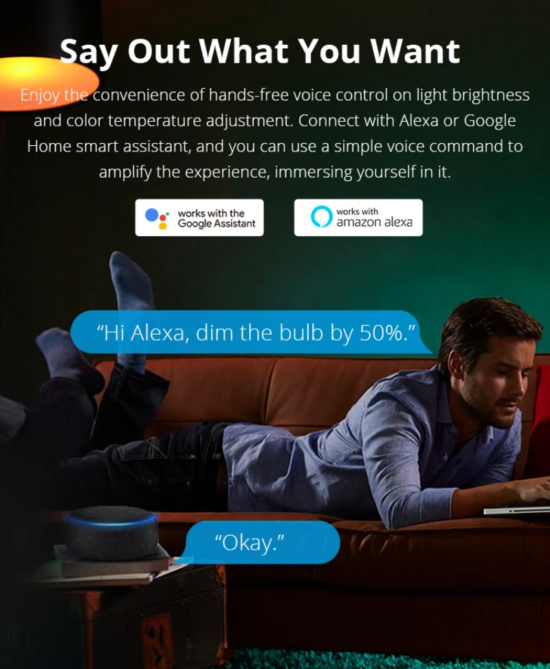 Support voice to turn on/off, adjust the brightness and color temperature