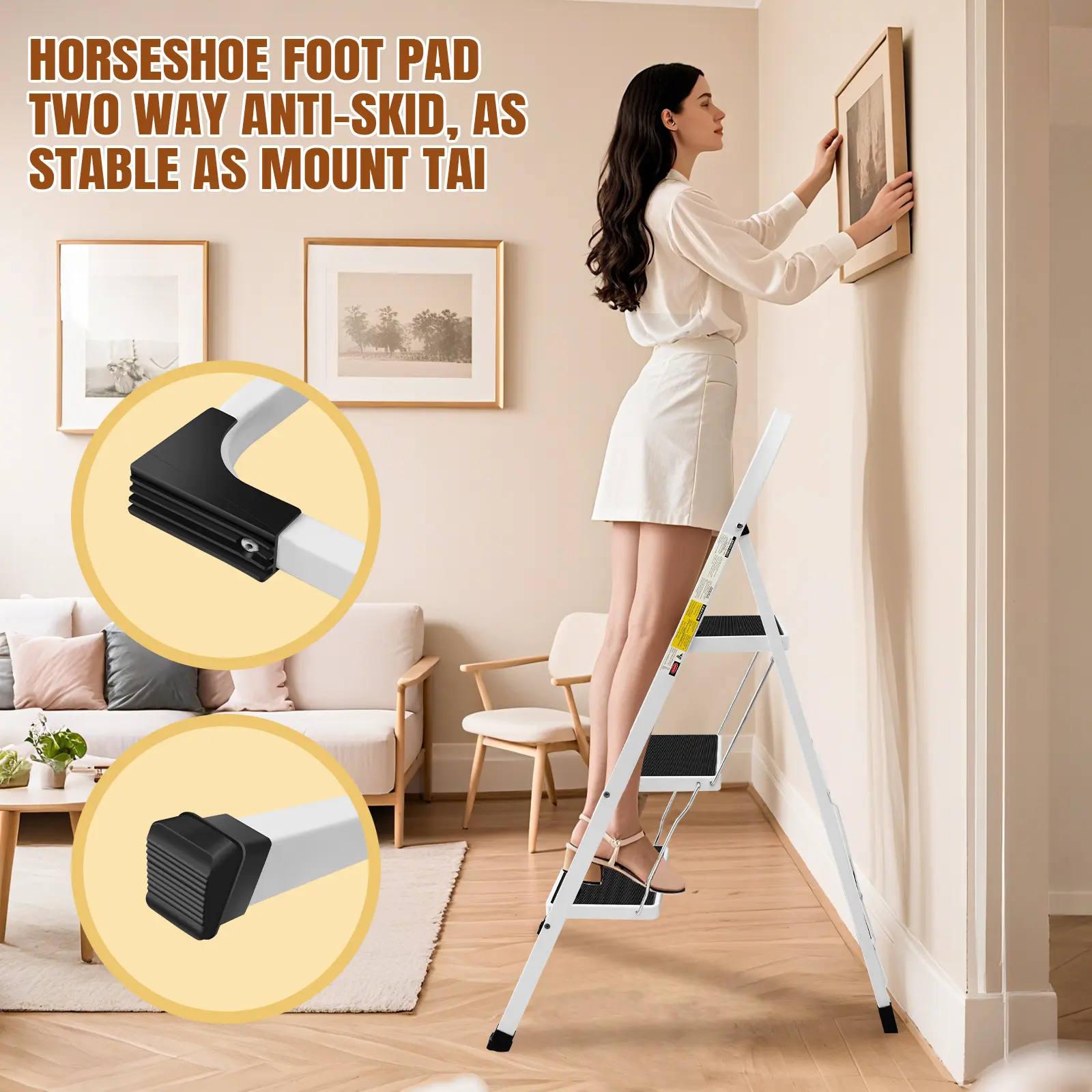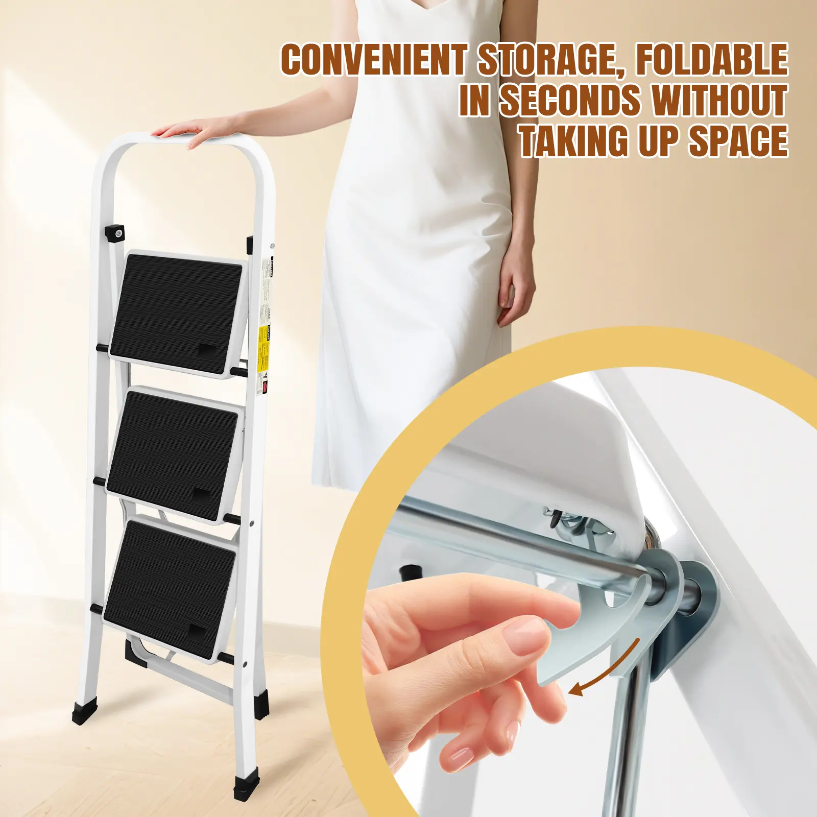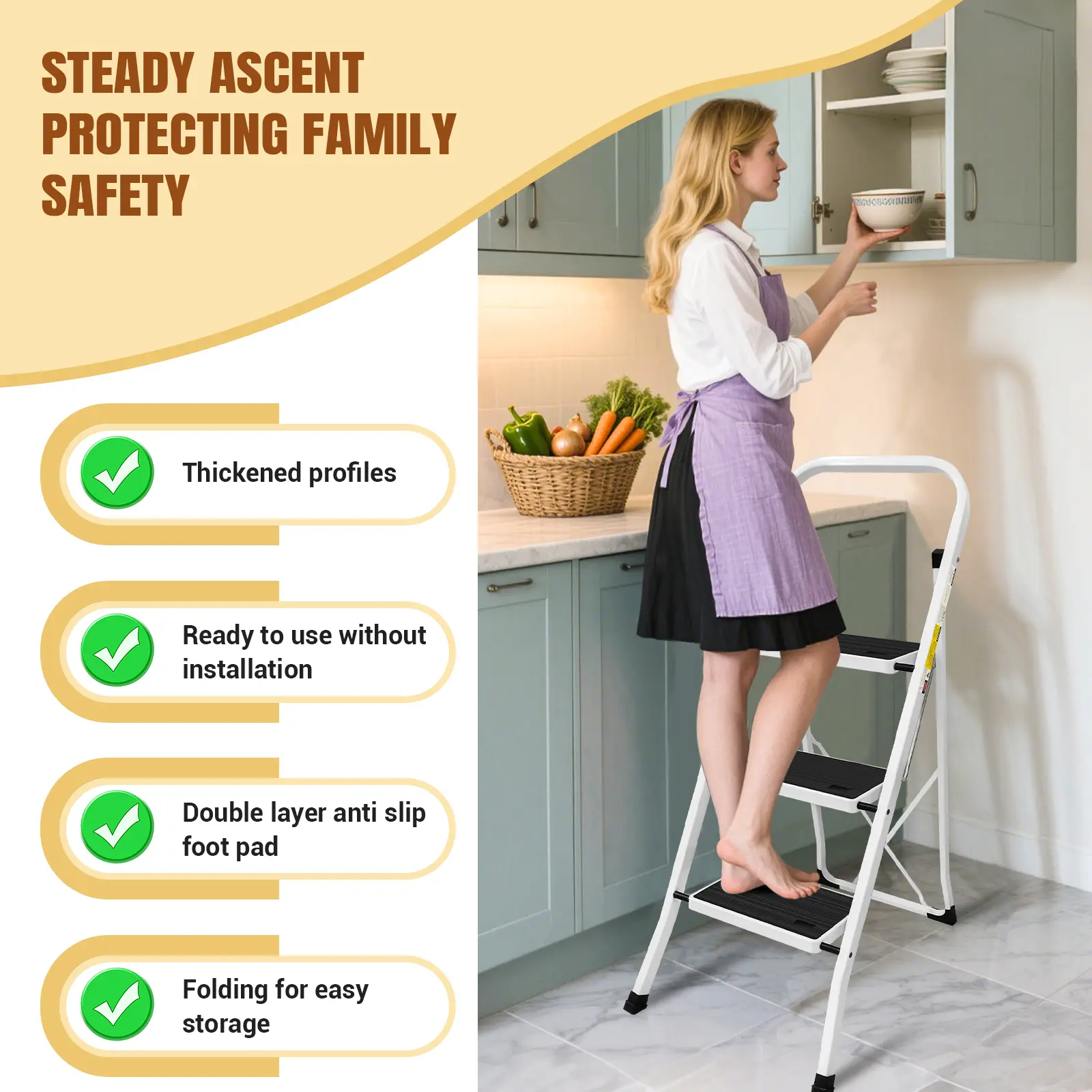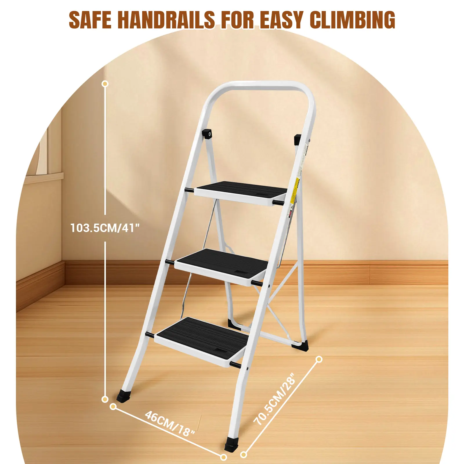 Steel Folding 3 Step Folding with Anti-Slip Pedal Lightweight with Handrails NonSlip Small Stool Ladders For Kitchen Touring car