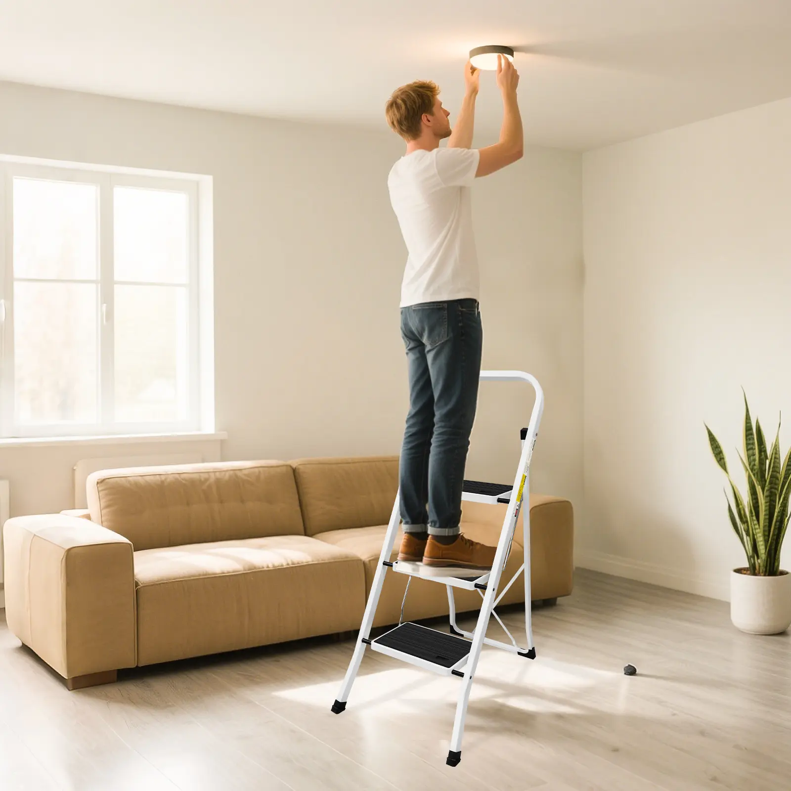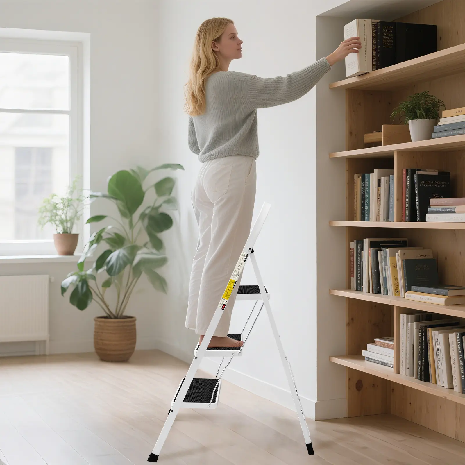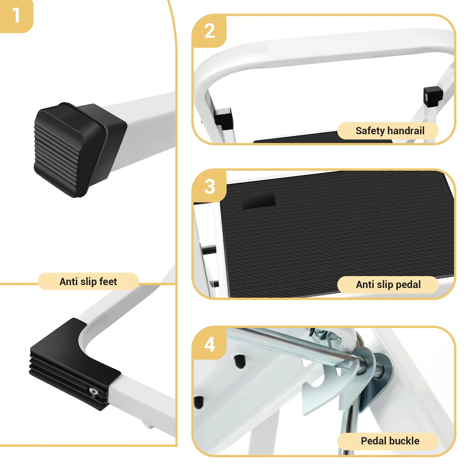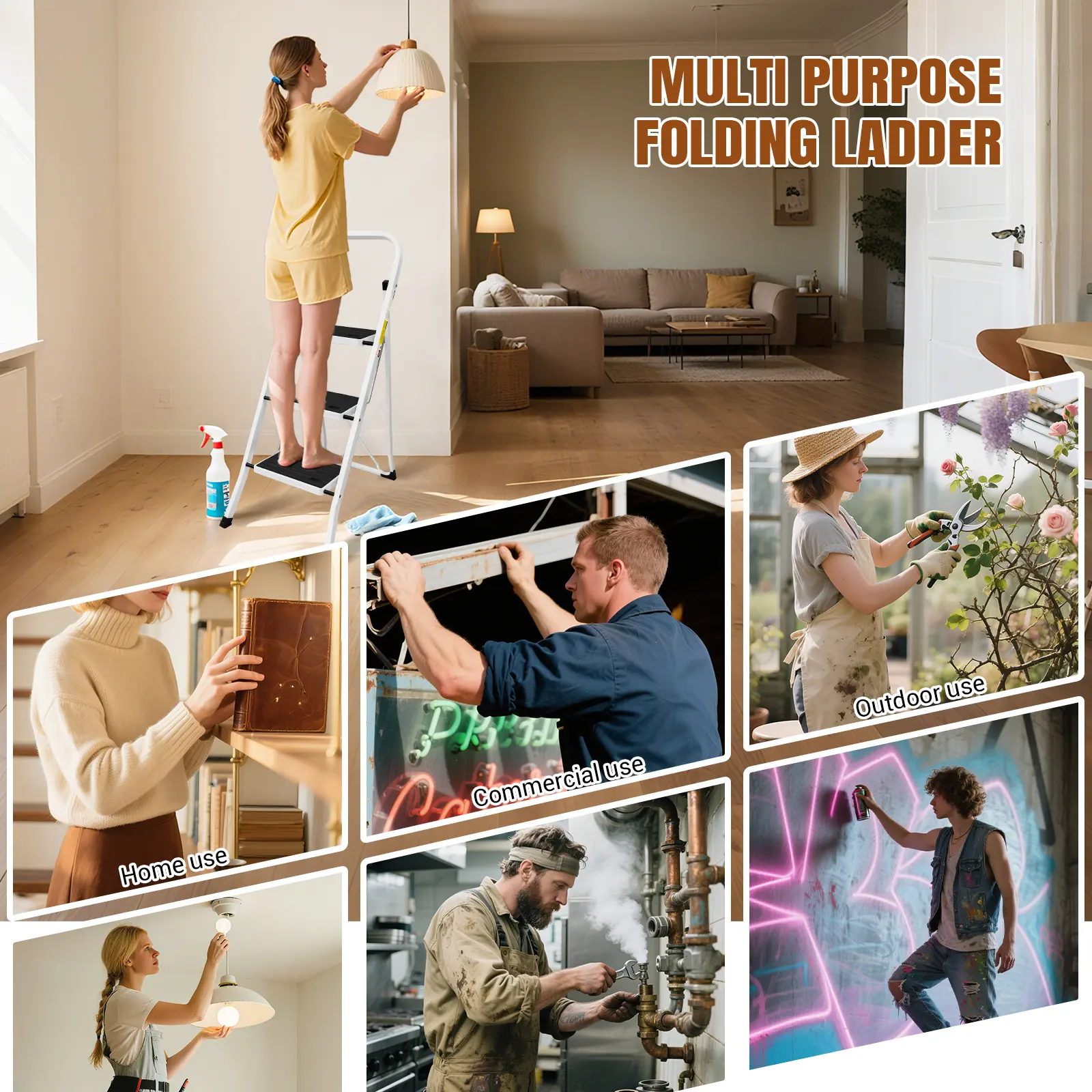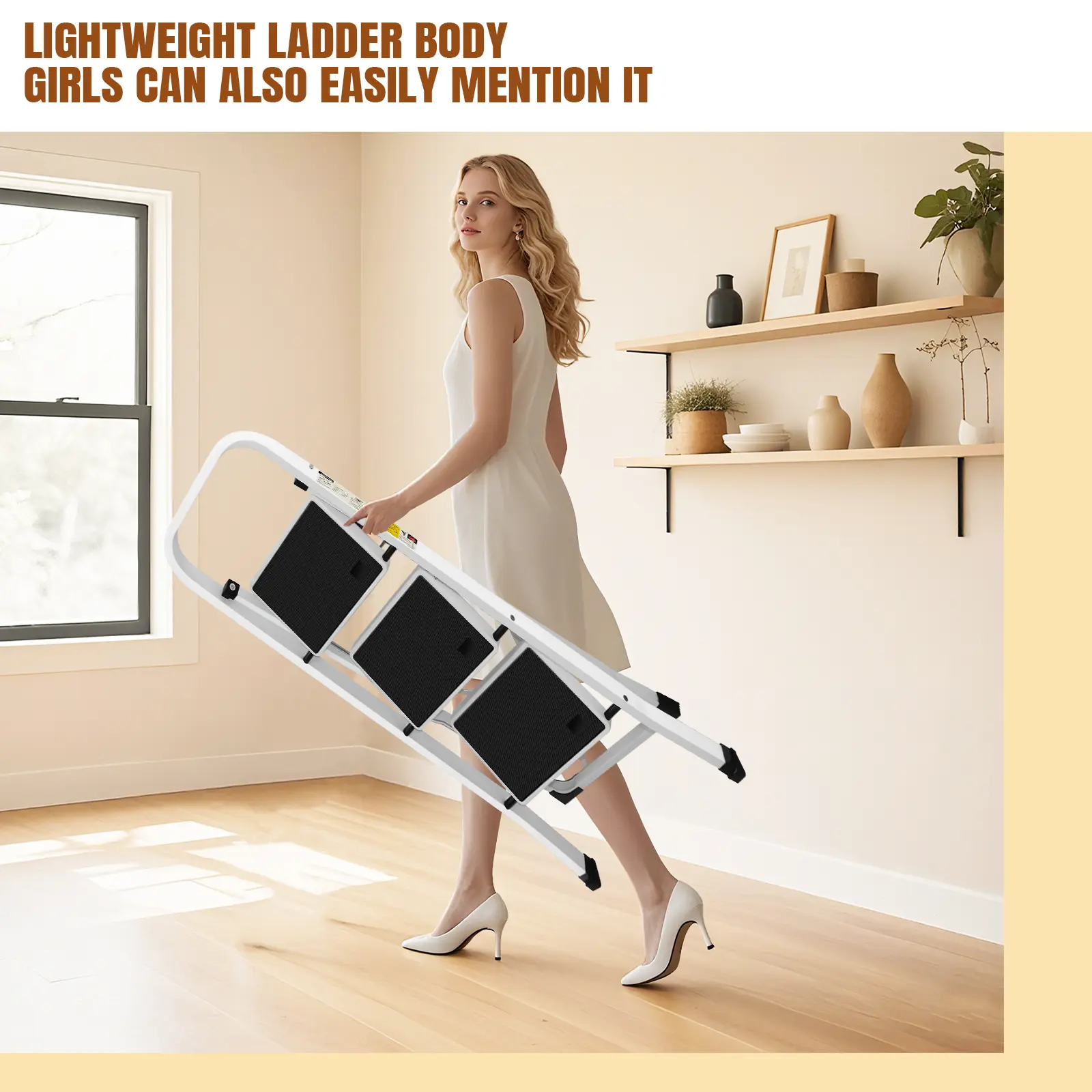 Steel Folding 3 Step Folding with Anti-Slip Pedal Lightweight with Handrails NonSlip Small Stool Ladders For Kitchen Touring car