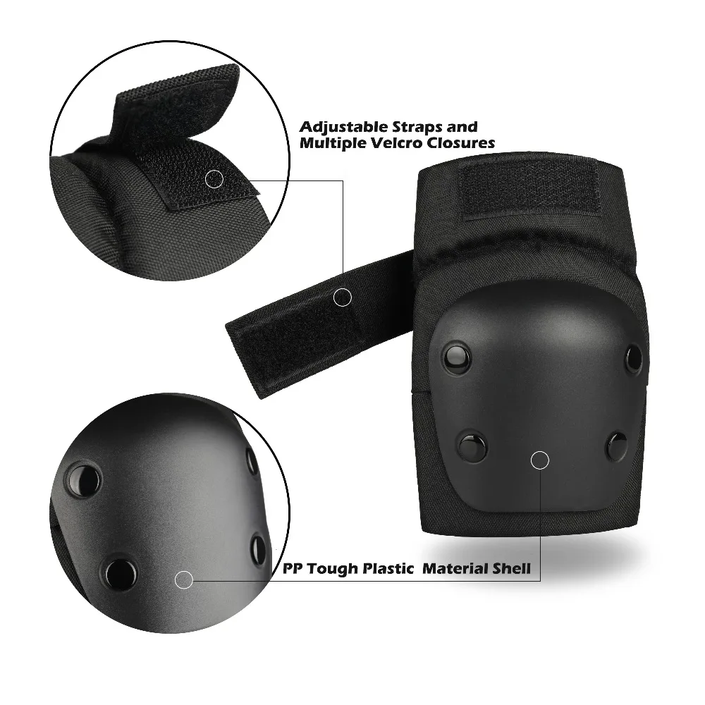 1.Make of durable PP  material shell and High-density thick EVA cushion with tough plastic plates, Anti-shock, wear-resistant,give you great protection for knee, elbow and wrist