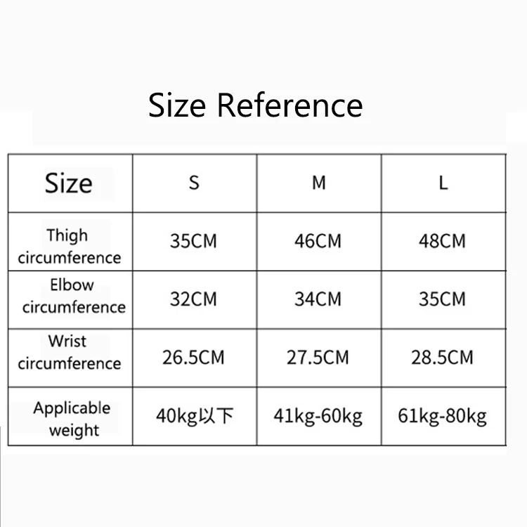S: Suitable for weight below 35Kg ( knee pads 35cm,  elbow pads32cm, wrist bands 26.5cm )