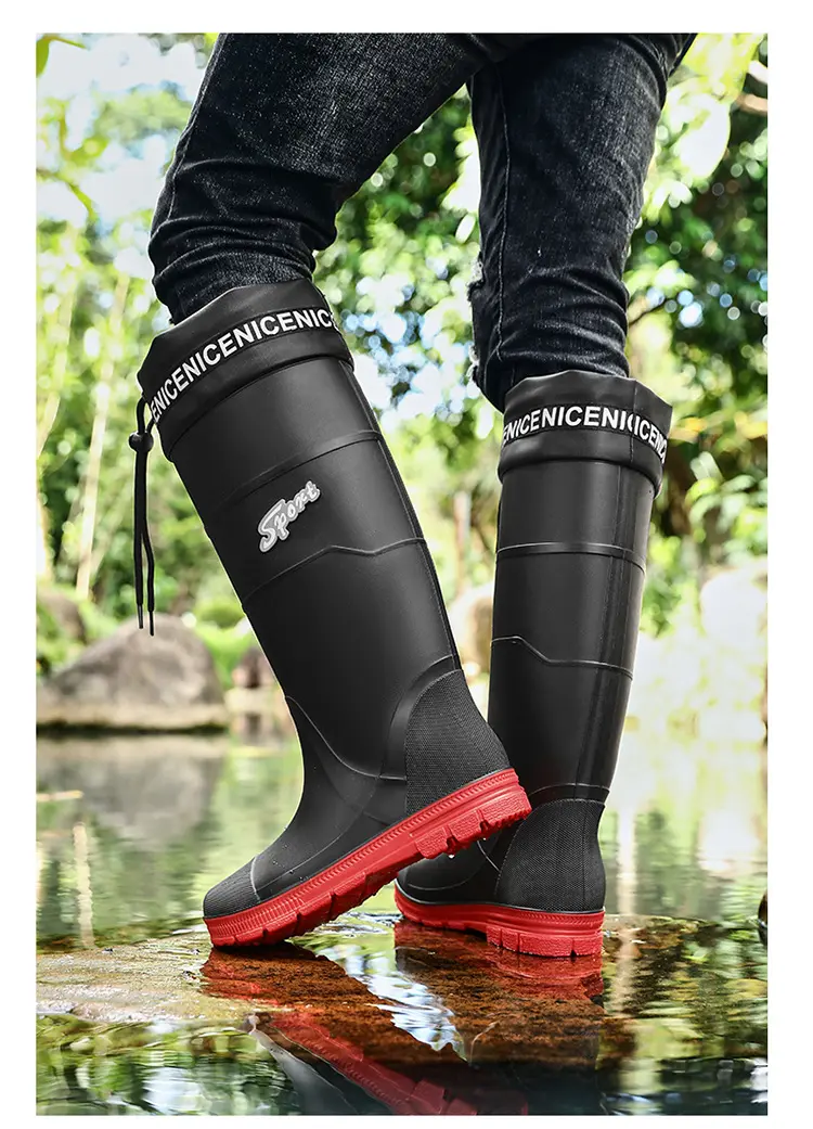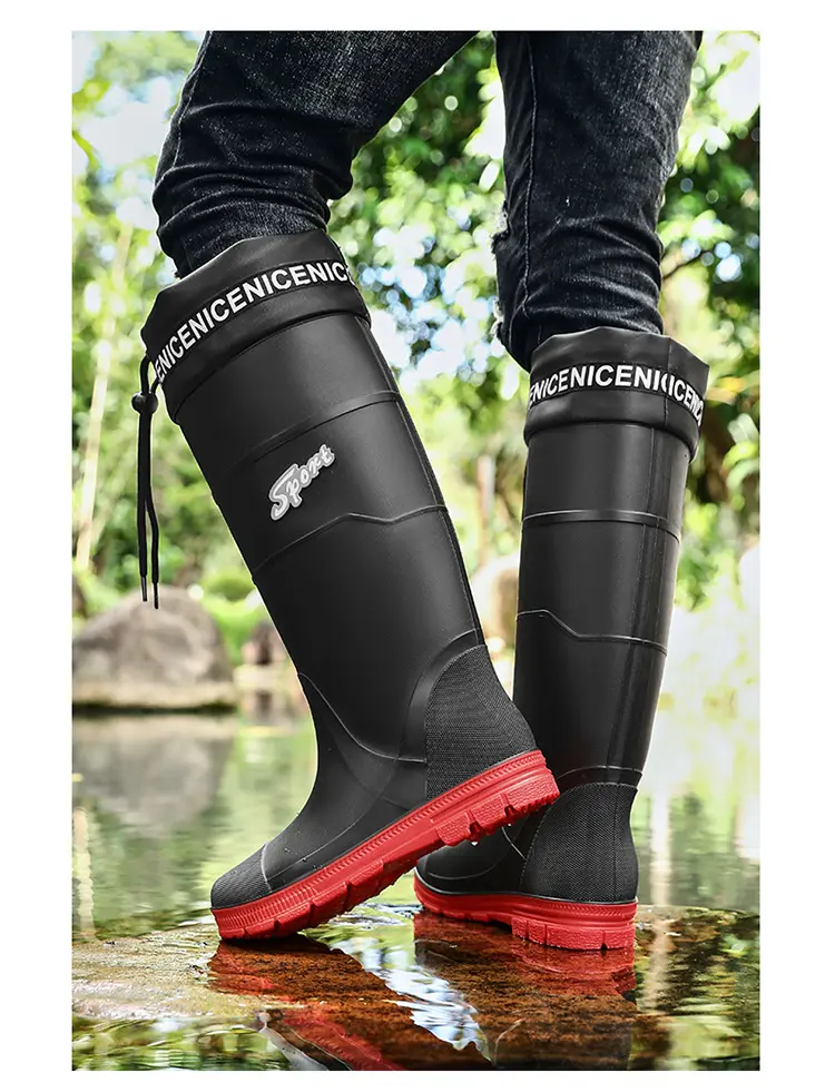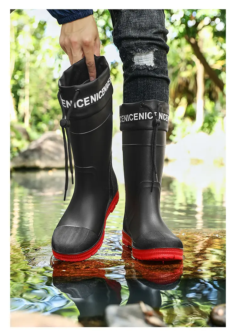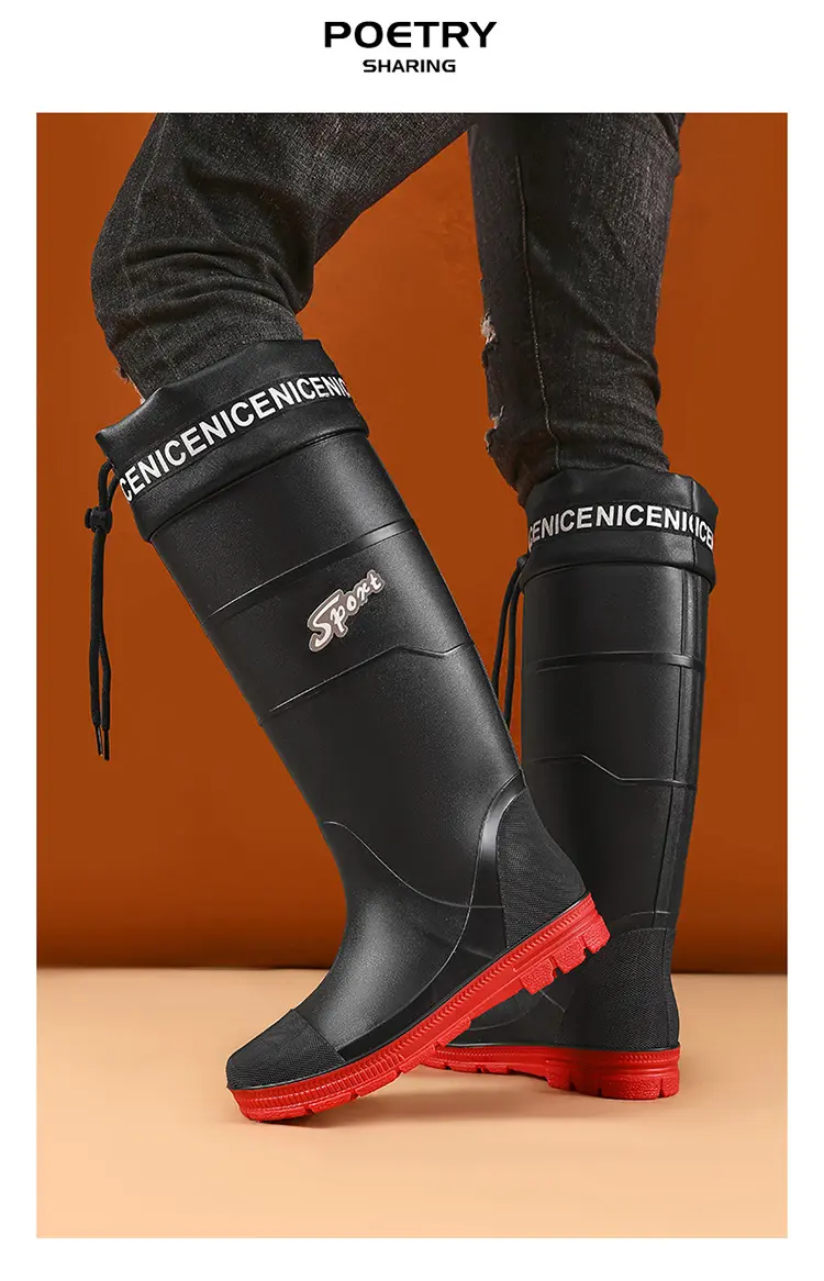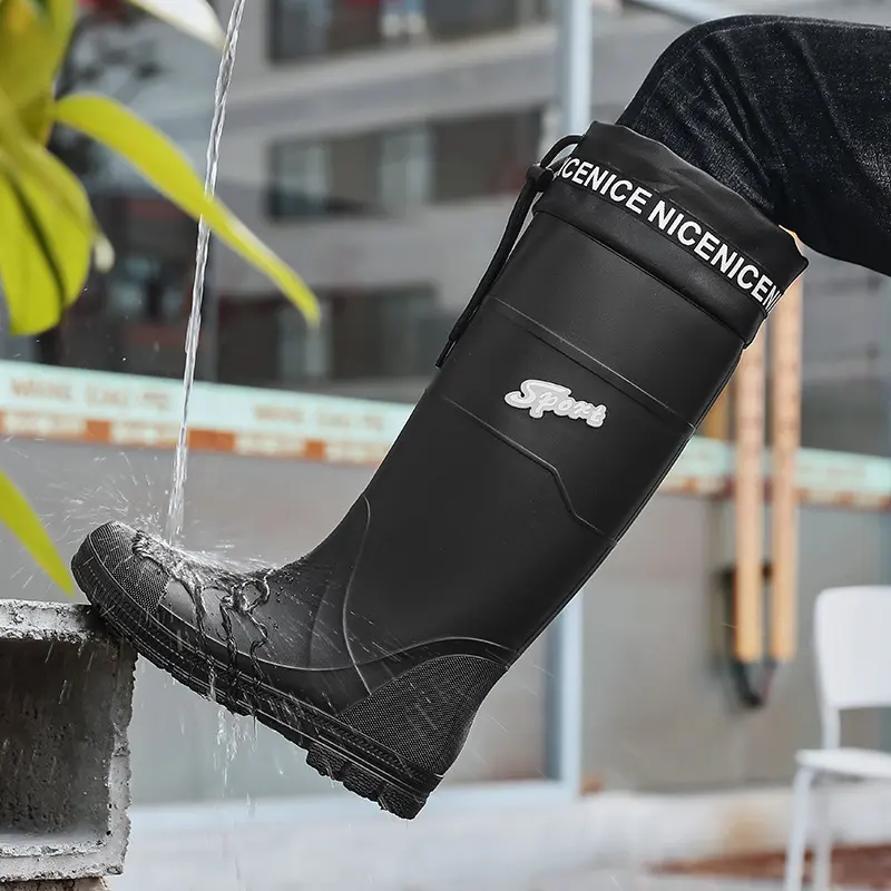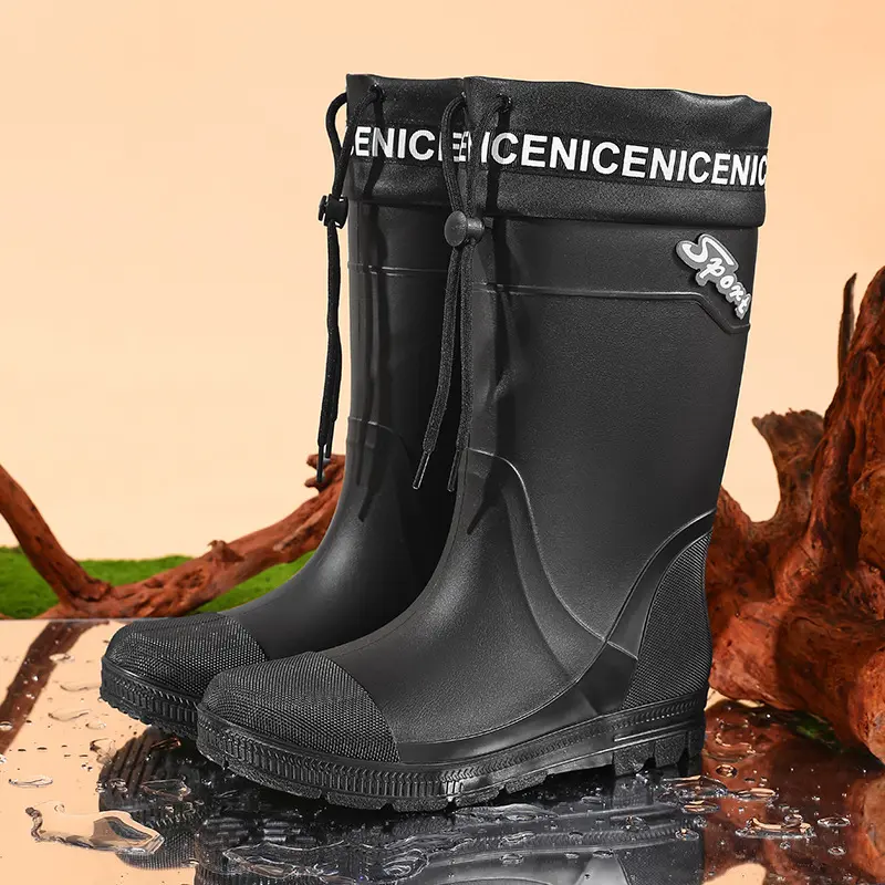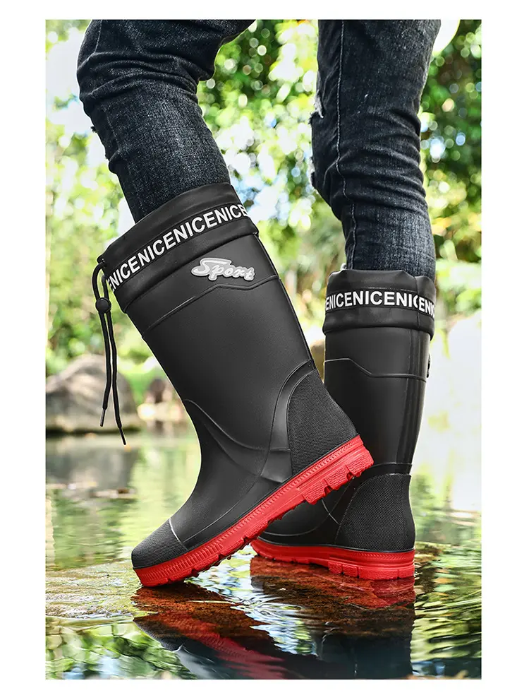 Thickened Steel Sole Men’s Rain Boots Long-tube High-top Water Shoes Non-slip Construction Site Rain Boots Fishing Rubber Shoes