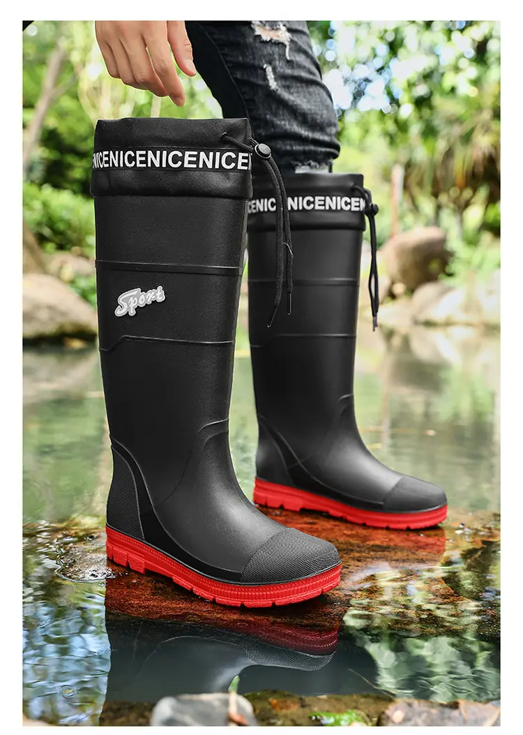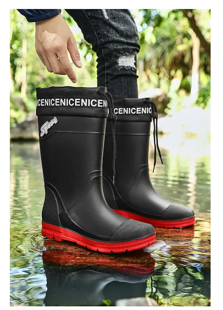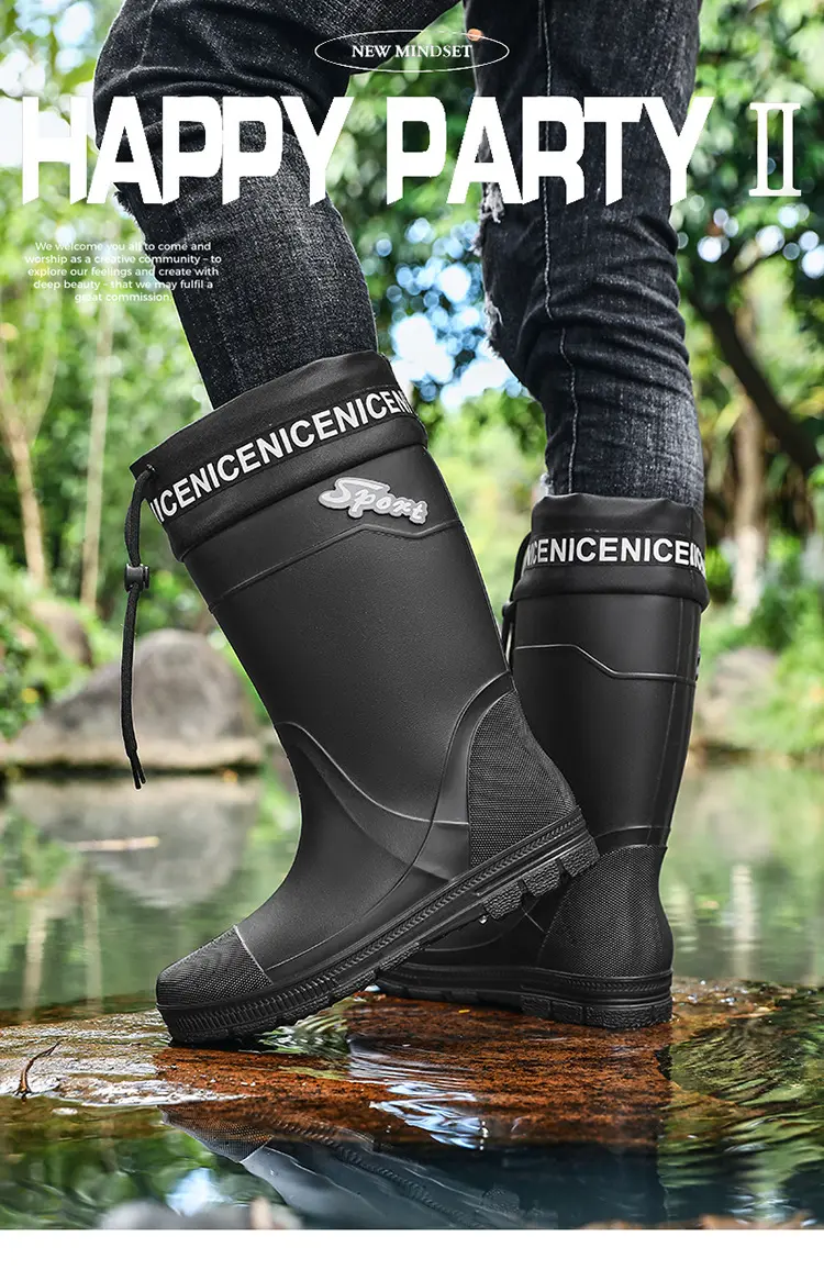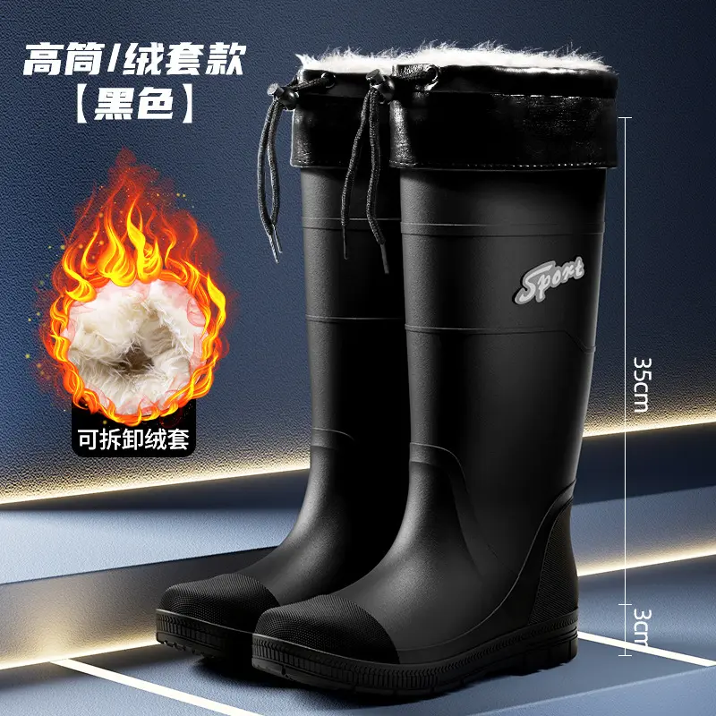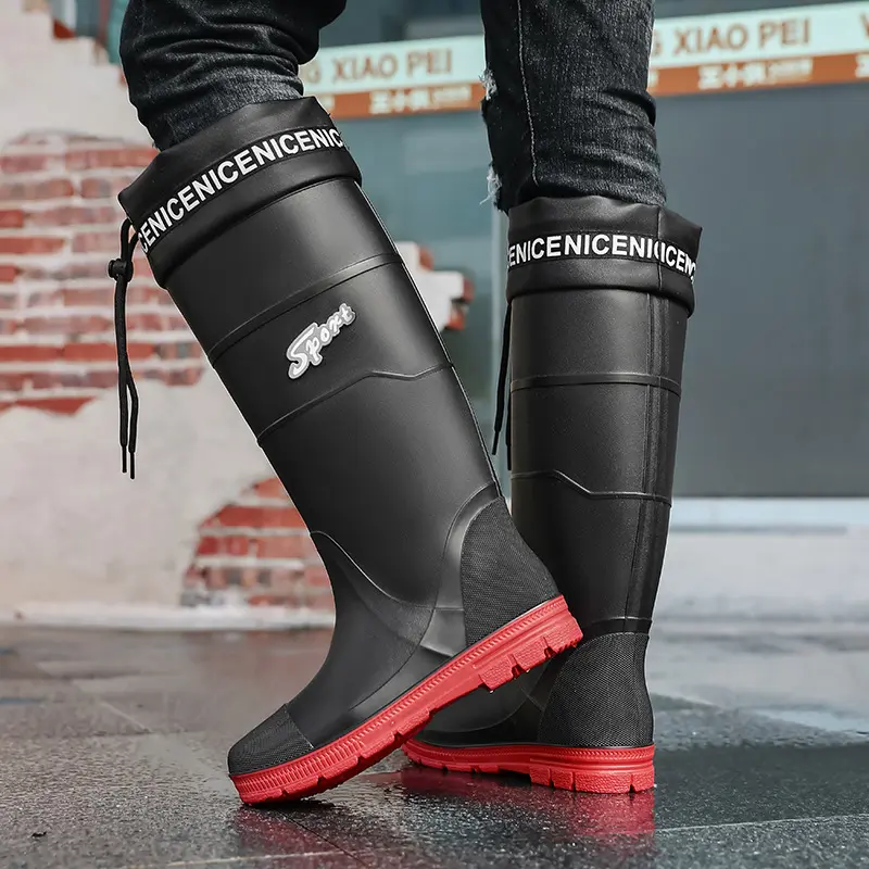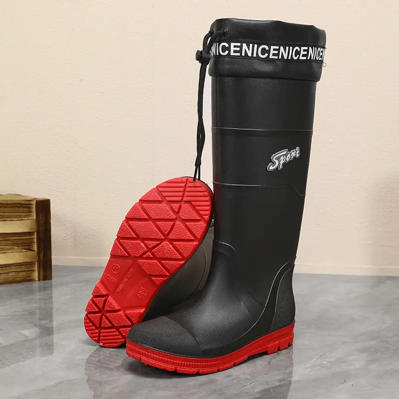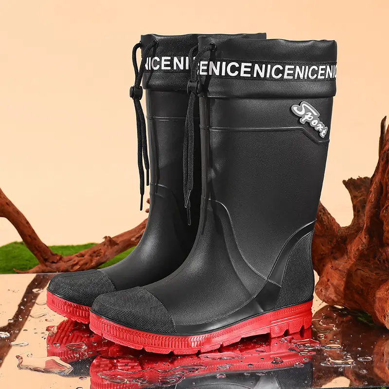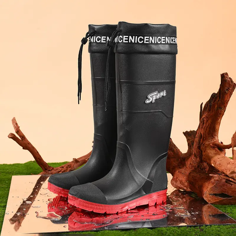 Thickened Steel Sole Men’s Rain Boots Long-tube High-top Water Shoes Non-slip Construction Site Rain Boots Fishing Rubber Shoes