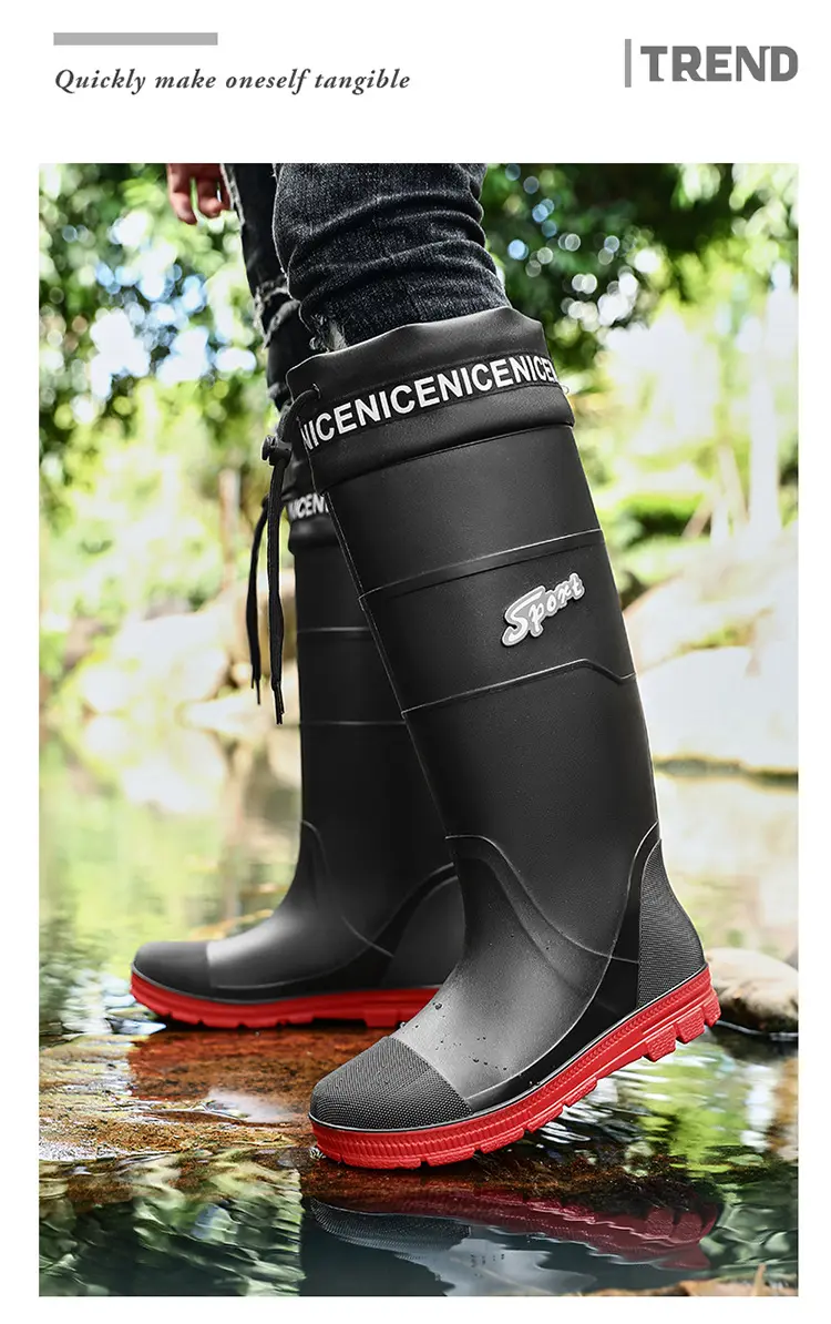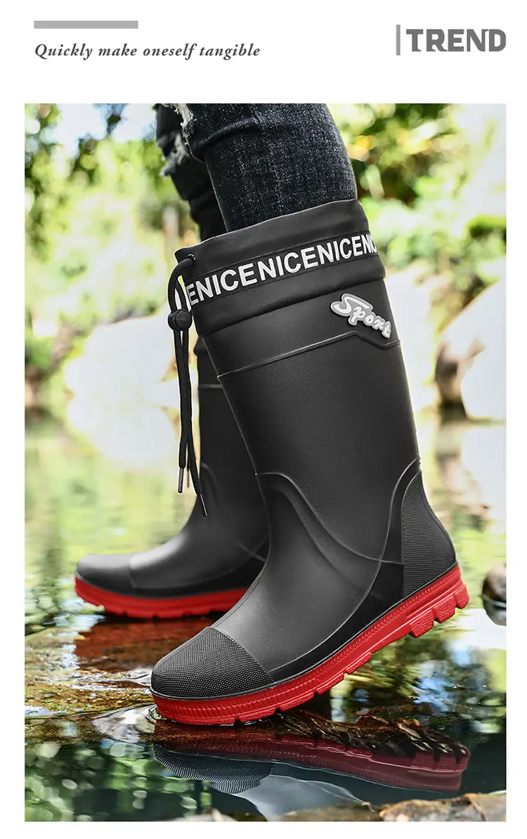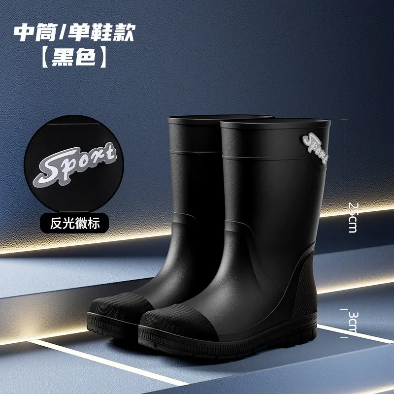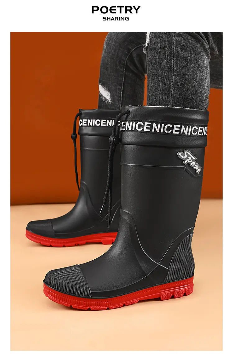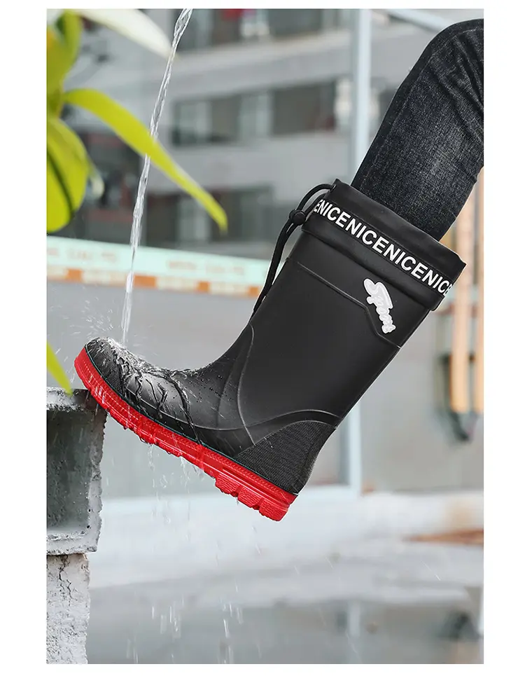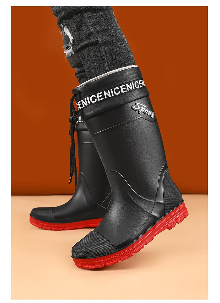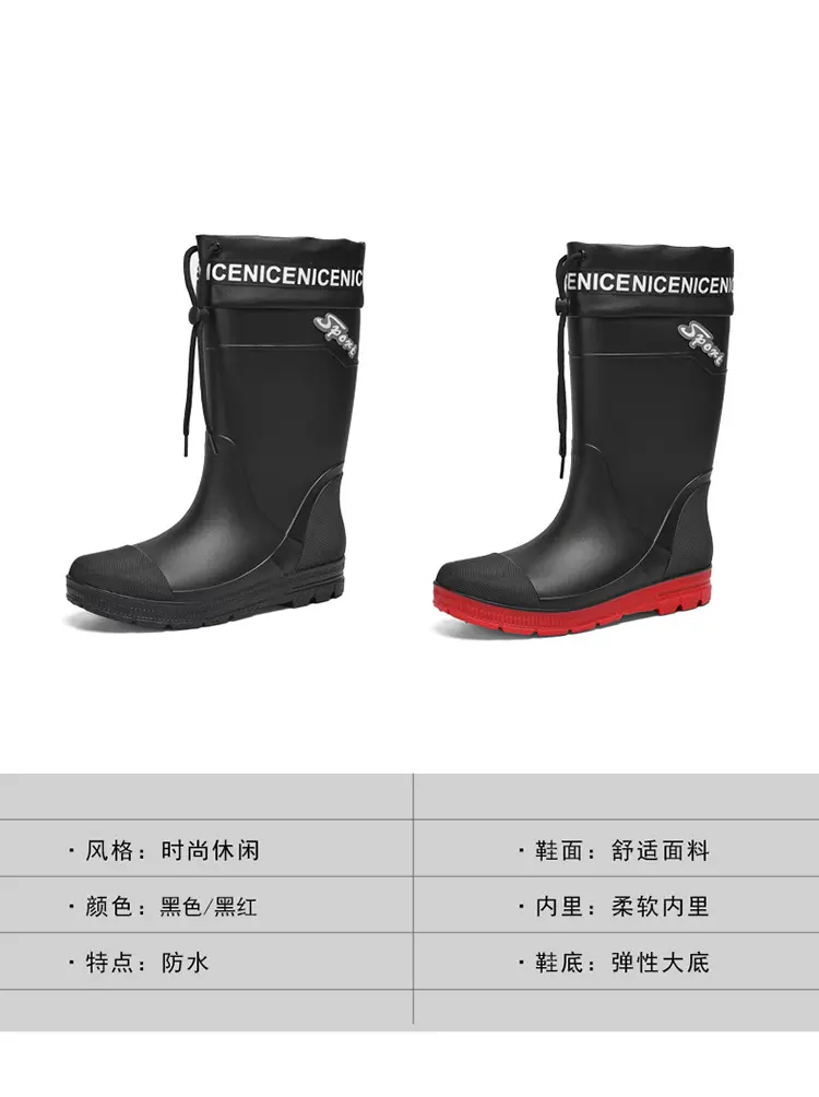 Thickened Steel Sole Men’s Rain Boots Long-tube High-top Water Shoes Non-slip Construction Site Rain Boots Fishing Rubber Shoes