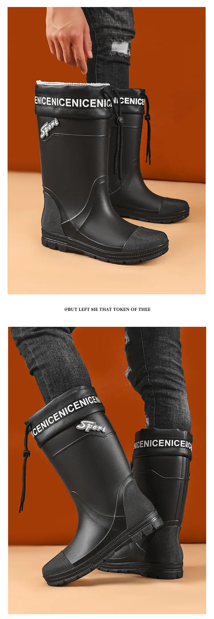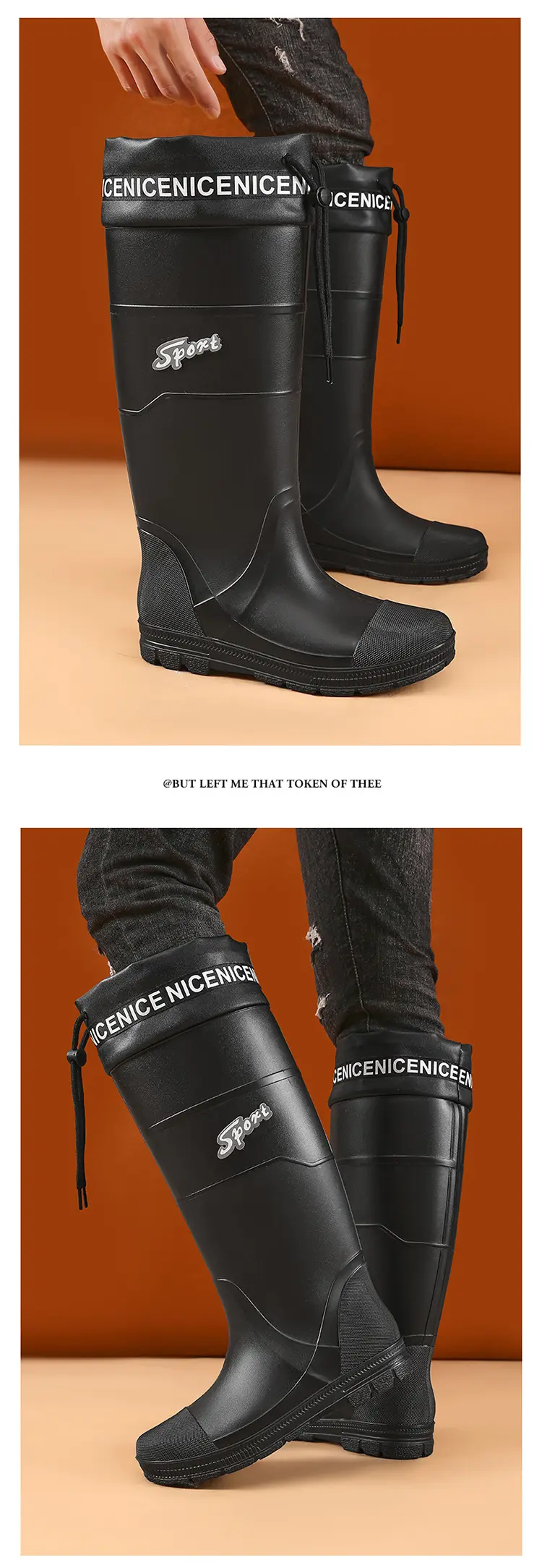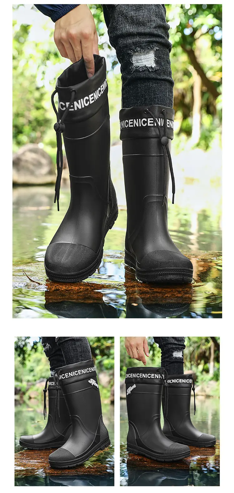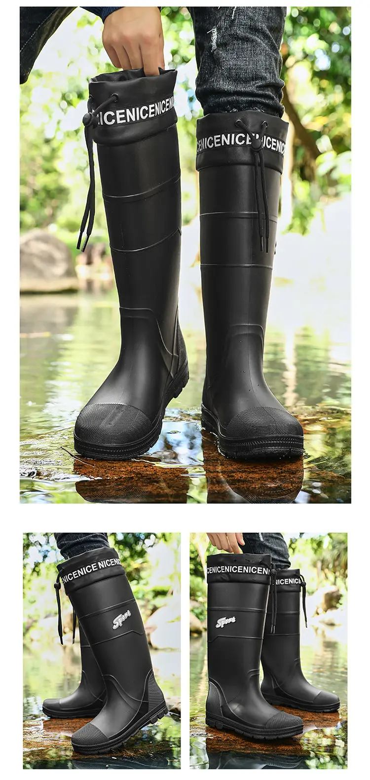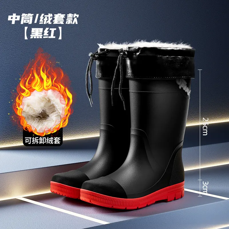 Thickened Steel Sole Men’s Rain Boots Long-tube High-top Water Shoes Non-slip Construction Site Rain Boots Fishing Rubber Shoes