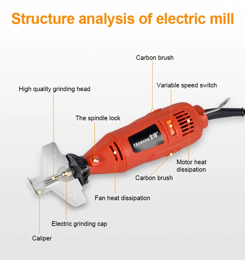 — Spindle lock to ease grinding head replacement, easy and convenient to use.