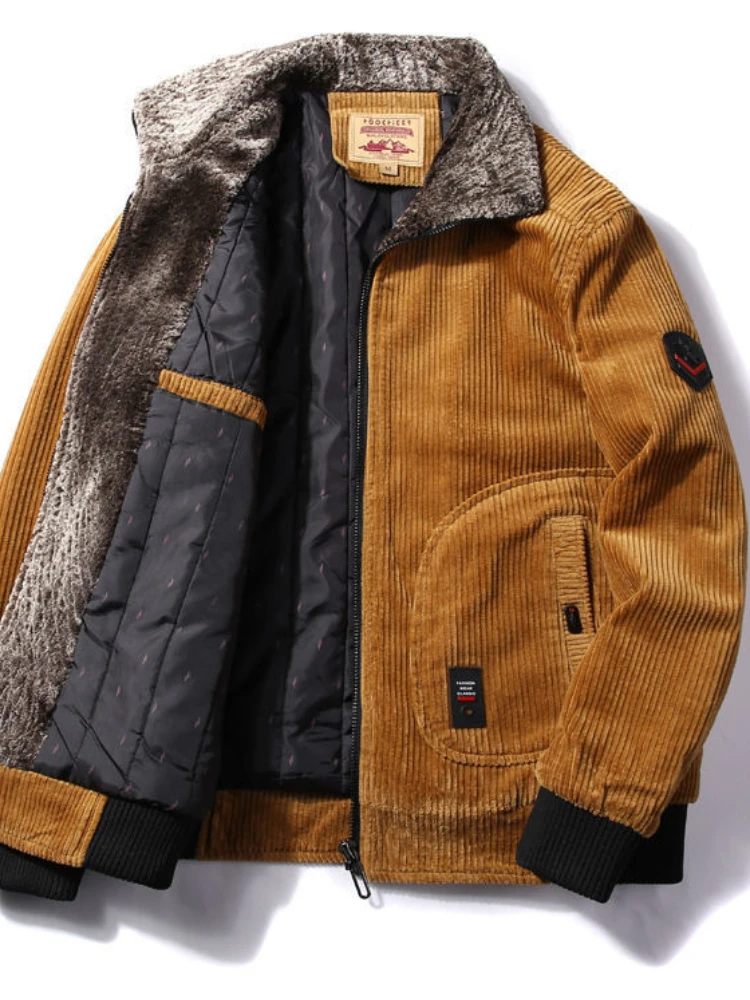 Treesolo Male Thermal Windbreaker Plus Size Men’s Warm Winter Corduroy Jackets and Coats Fur Collar Winter Casual Jacket Outwear