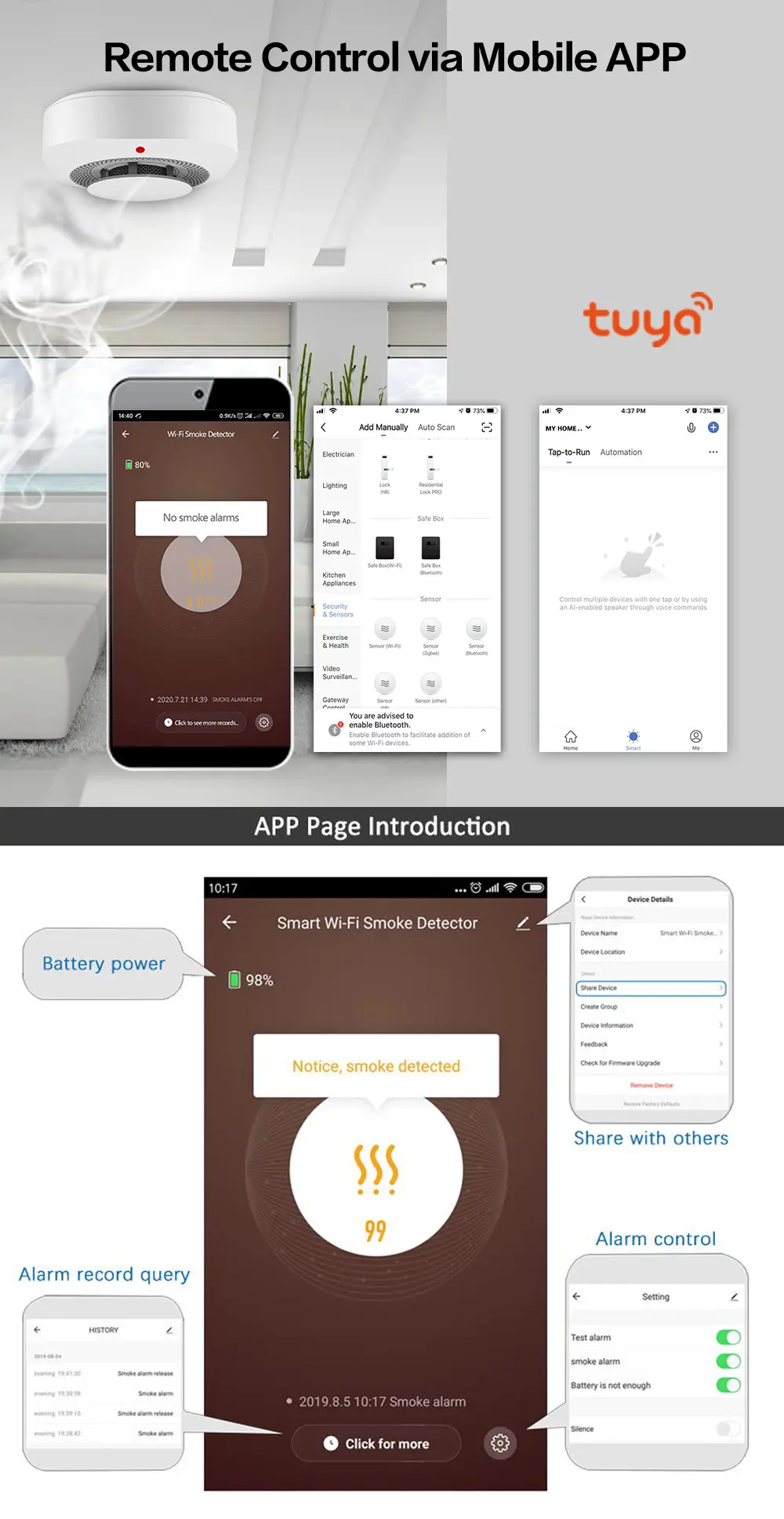 Install ‘Tuya Smart’ APP on your smartphone the first time you use the detector.